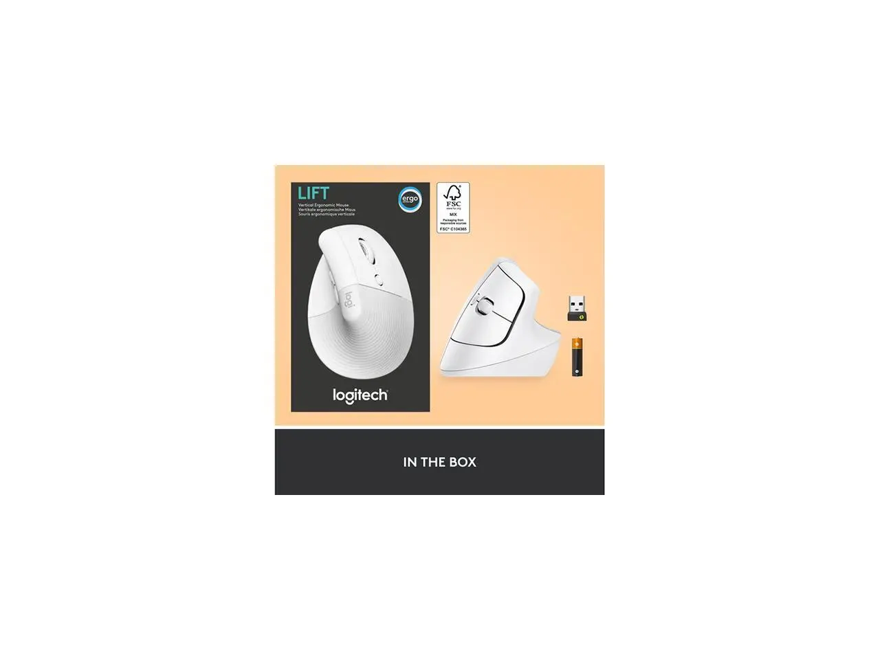 5. Logitech Lift Vertical Ergonomic Mouse, Wireless, Bluetooth or Logi Bolt USB receiver, Quiet clicks, 4 buttons, compatible with Windows/macOS/iPadOS, Laptop, PC - Off White