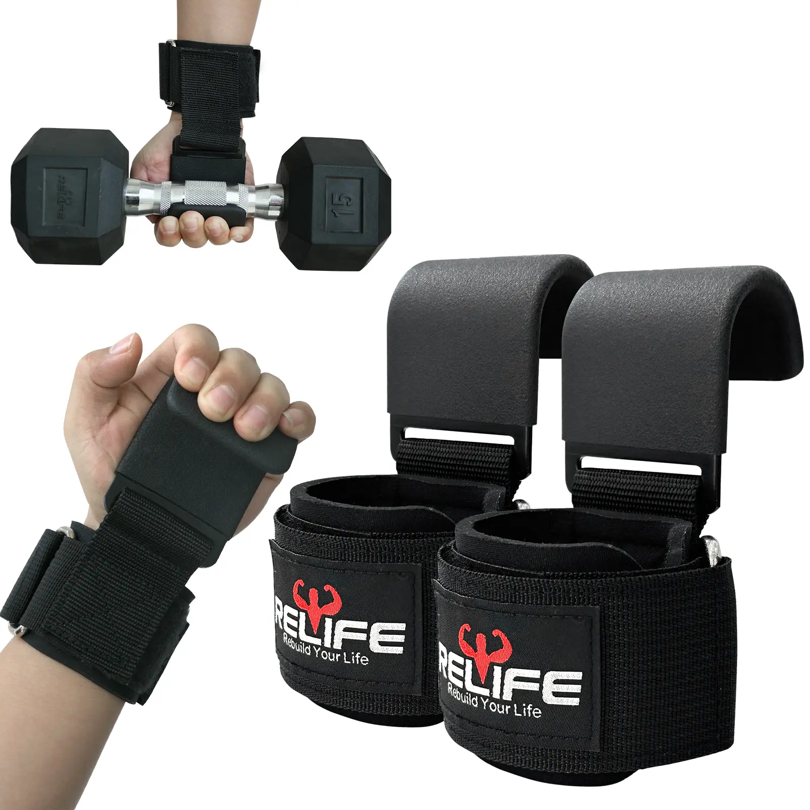·PREMIUM MATERIALS BUILT TO LAST: Unlike many other lifting hooks on the market, you can expect the highest quality materials when you order your pair from us. Relifesports hooks are a gym bag necessity that are built to last through the toughest workouts. We use reinforced nylon webbing and premium thick neoprene to ensure the most comfort when using our hook grips.