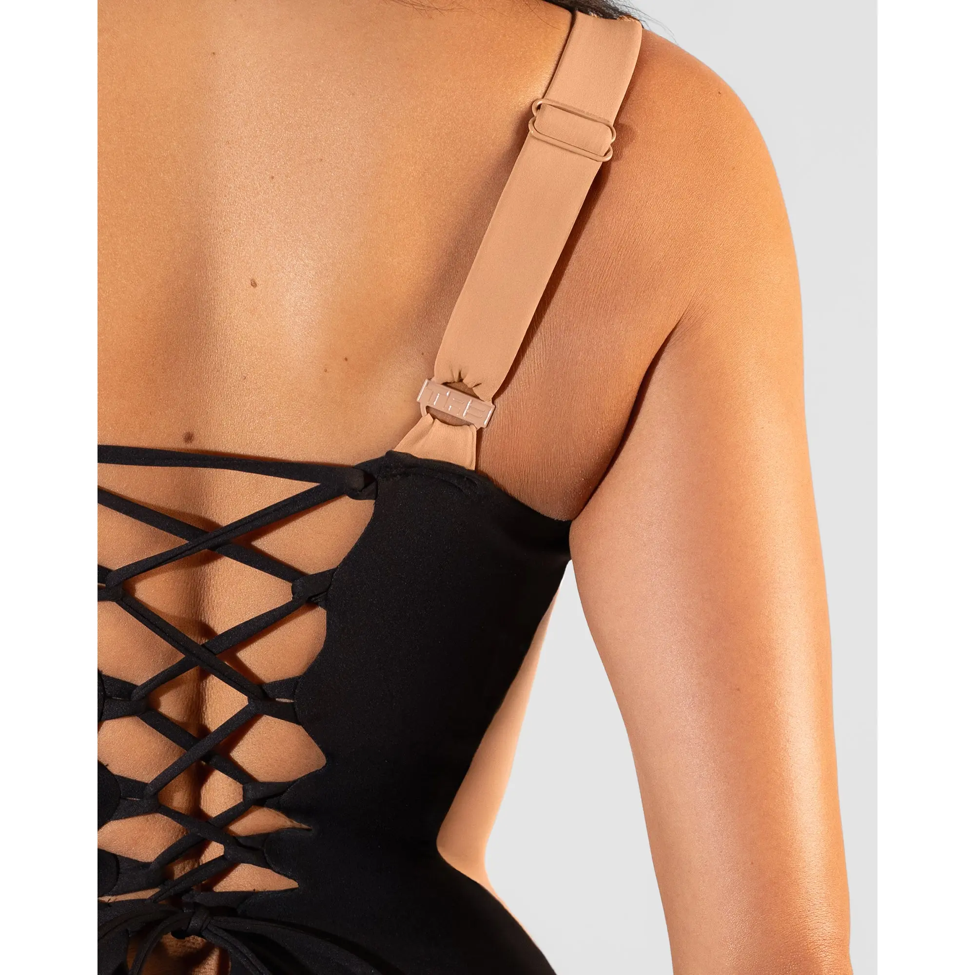 ·Signature snatch with open back.