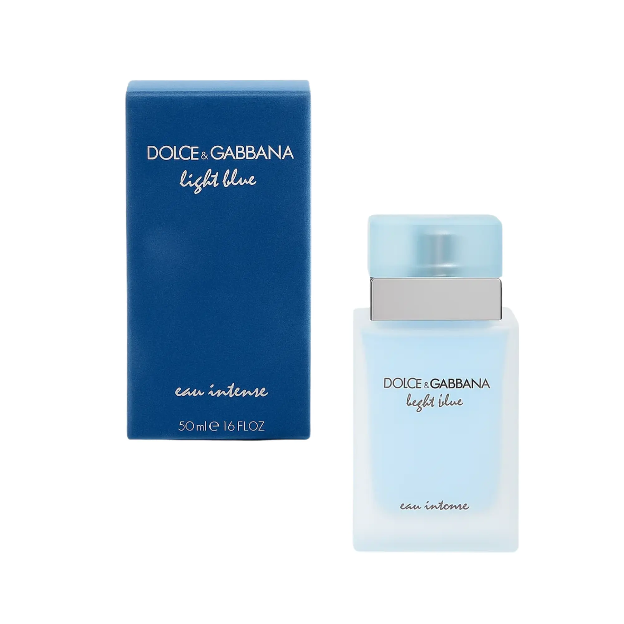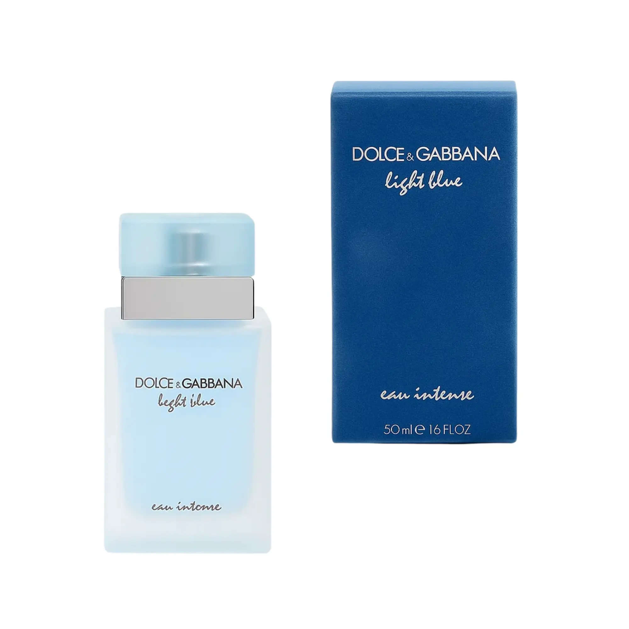 Dolce & Gabbana Light Blue Eau Intense â a radiant and vibrant fragrance blending crisp citrus, aromatic notes, and a subtle marine freshness. It opens with energetic Sicilian mandarin and green jasmine, flows into heart notes of juniper and brine accord, and settles into a warm base of amberwood and musk. This spray design fits effortlessly into both daily and evening wear, offering a refined yet fresh presence.