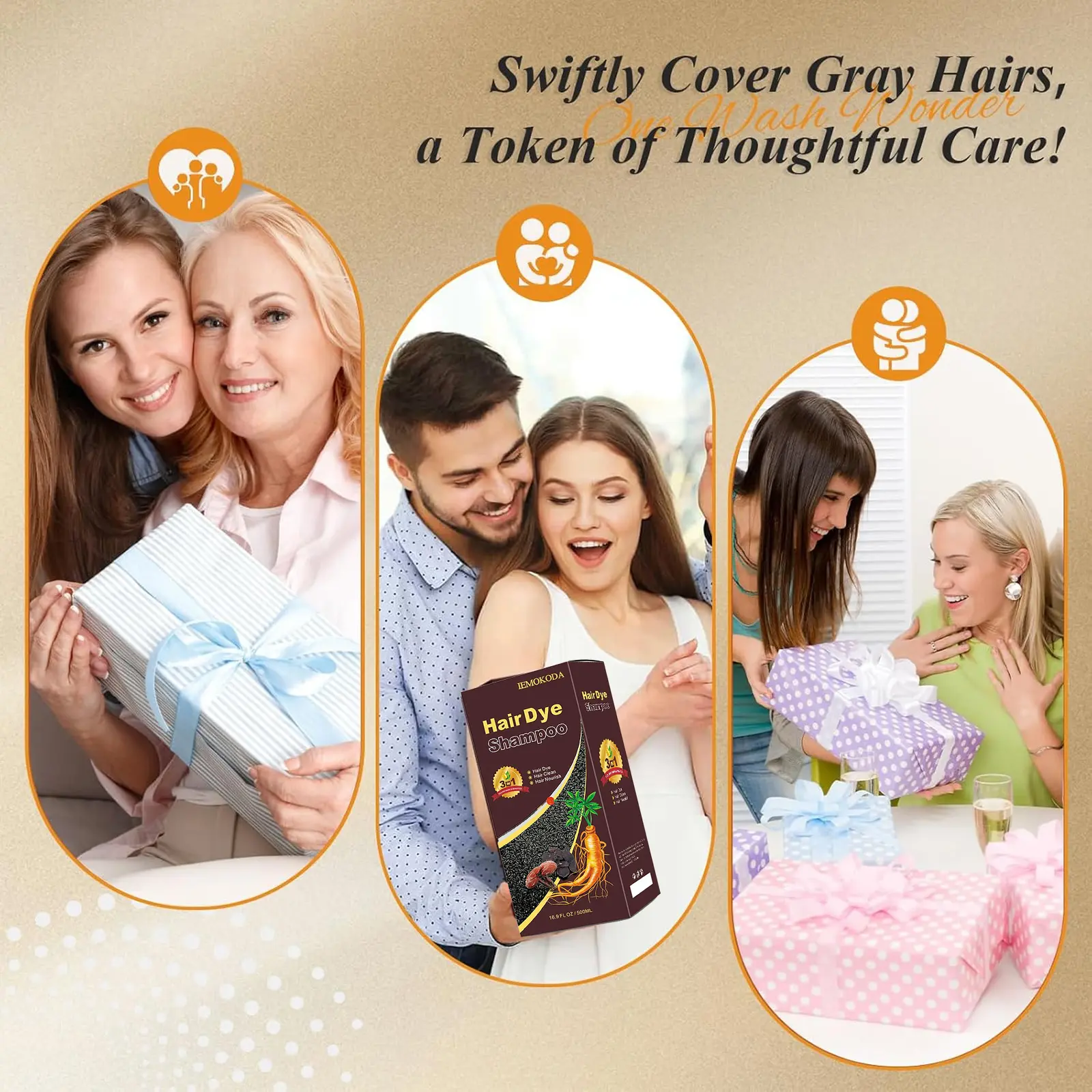 【Cleanse And Condition While You Color】: Our magic 3-in-1 hair color shampoo colors, cleanses, and conditions your tresses all at once! Make your hair soft, shiny and manageable after dyeing. Infused with herbal ingredients like Polygonum Multiflorum to anti-gray hair; Ginseng to nourish hair follicles. (Perfect gifts for parents and elders)