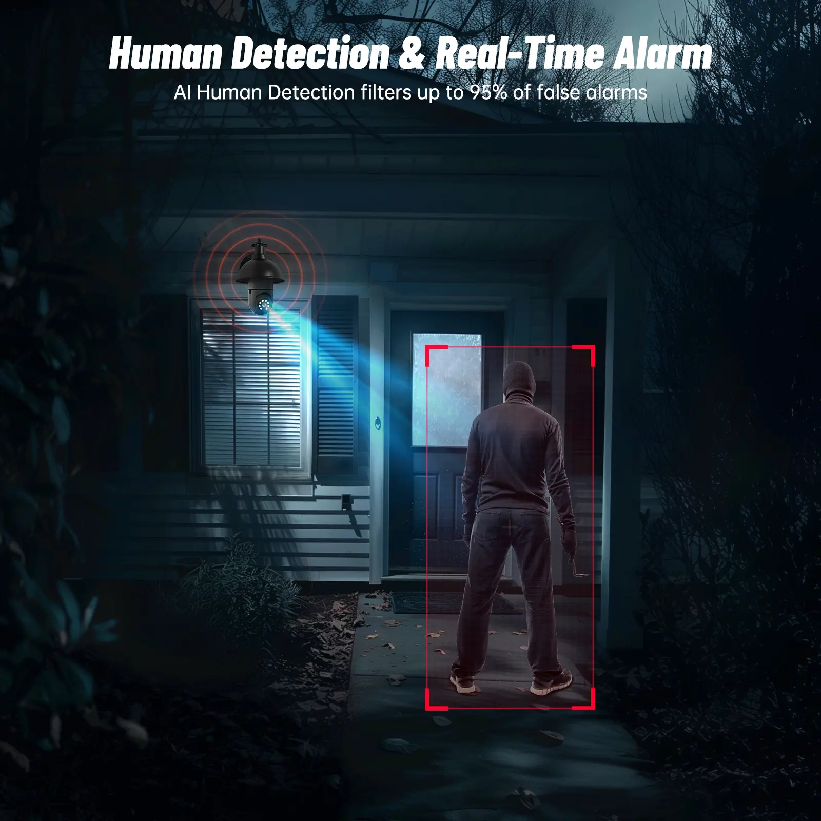【2-Way Audio & Smart Human Detection】 With built-in microphone and speaker, wireless light bulb cameras allow you to communicate with family anytime and hear visitors in real time. If you have Human Detection turned on in the app, bulb camera will only push an alert when it detects the entire human form. It helps send alarm notifications more accurately and reduce interference.