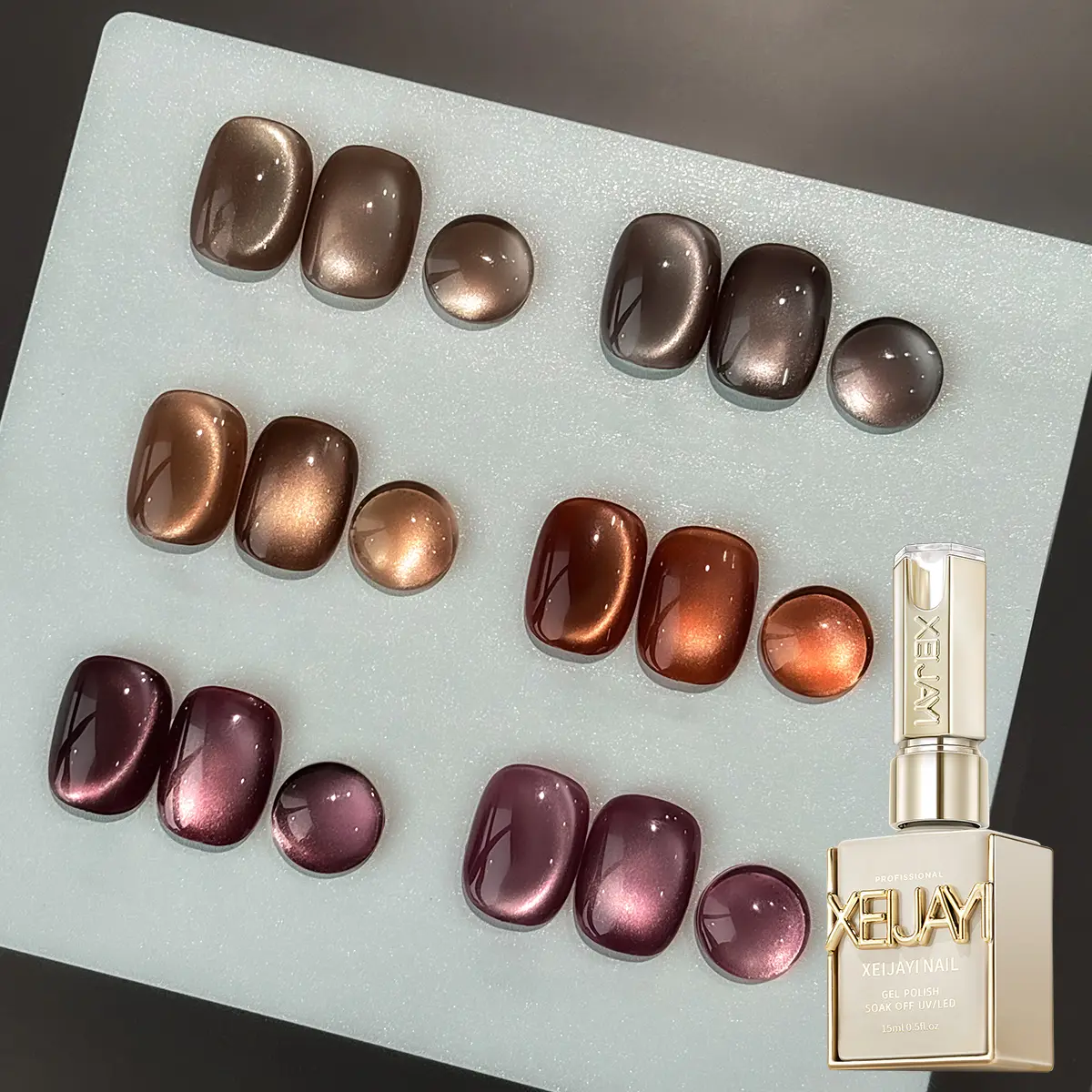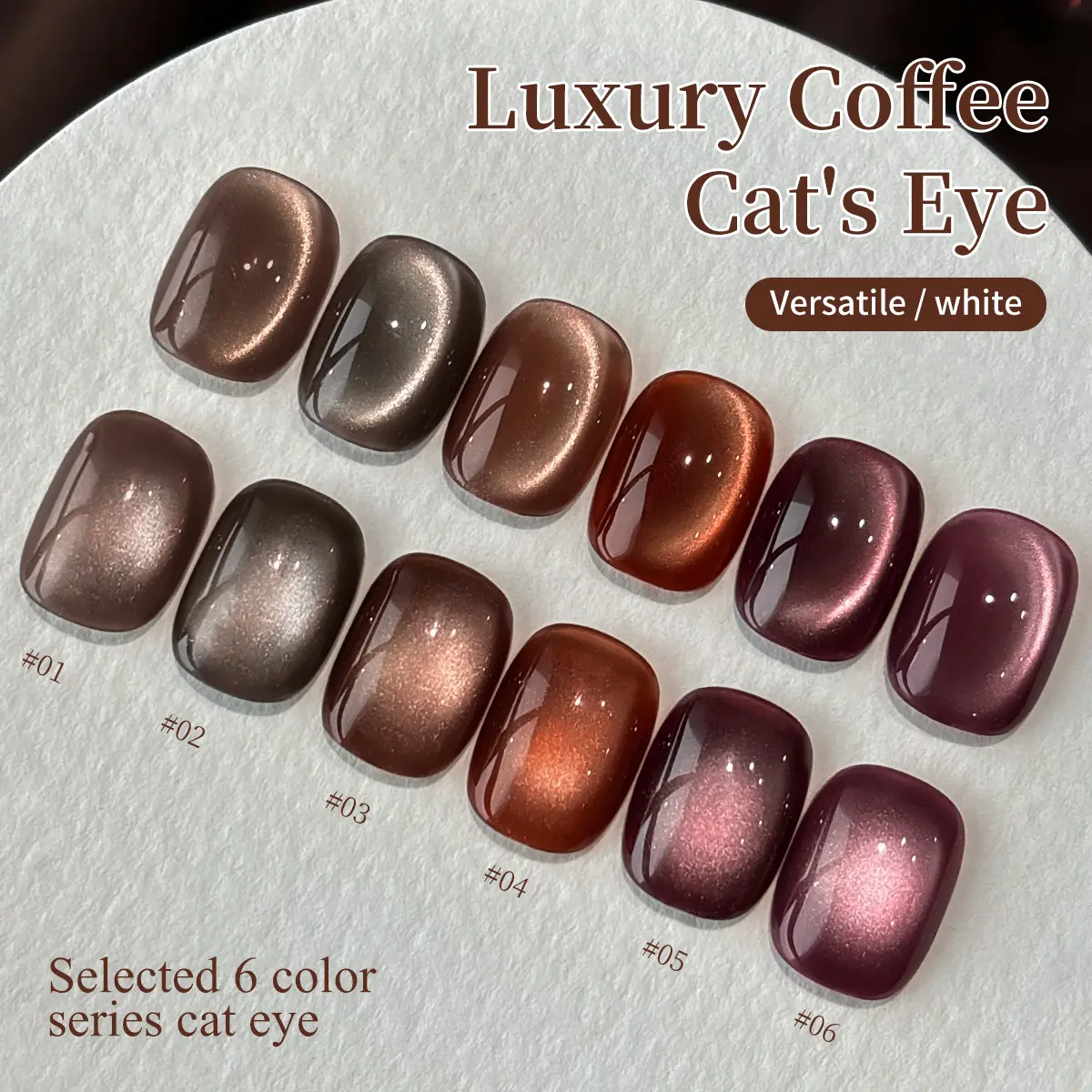 【LIVE】6PCS*15ML Light Luxury Coffee Cat Eye Gel Super Bright Cat Eye Nail Gel Polish for DIY Nail Art High-Density Glitter Long-Lasting Unscented Alcohol-Free