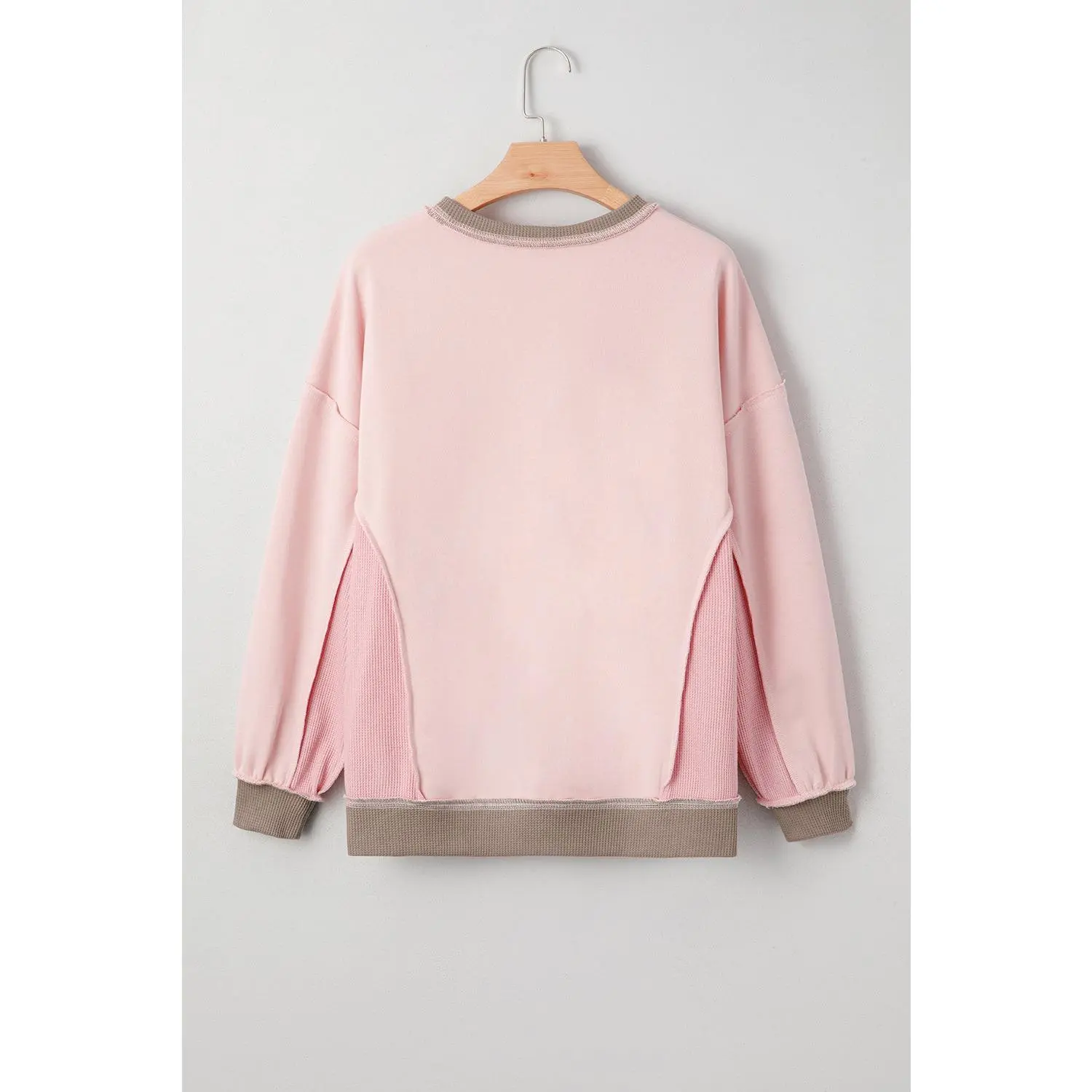 5. Light Pink Plus Color Block Waffle Patchwork Exposed Seam Baggy Sweatshirt