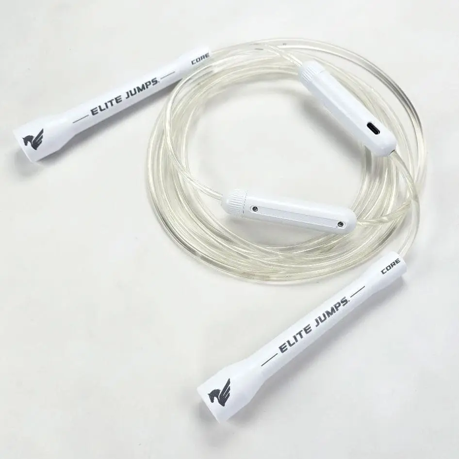 The rope shoots a laser down the special cord, which is flexible and maneuverable like a standard PVC jump rope cord.