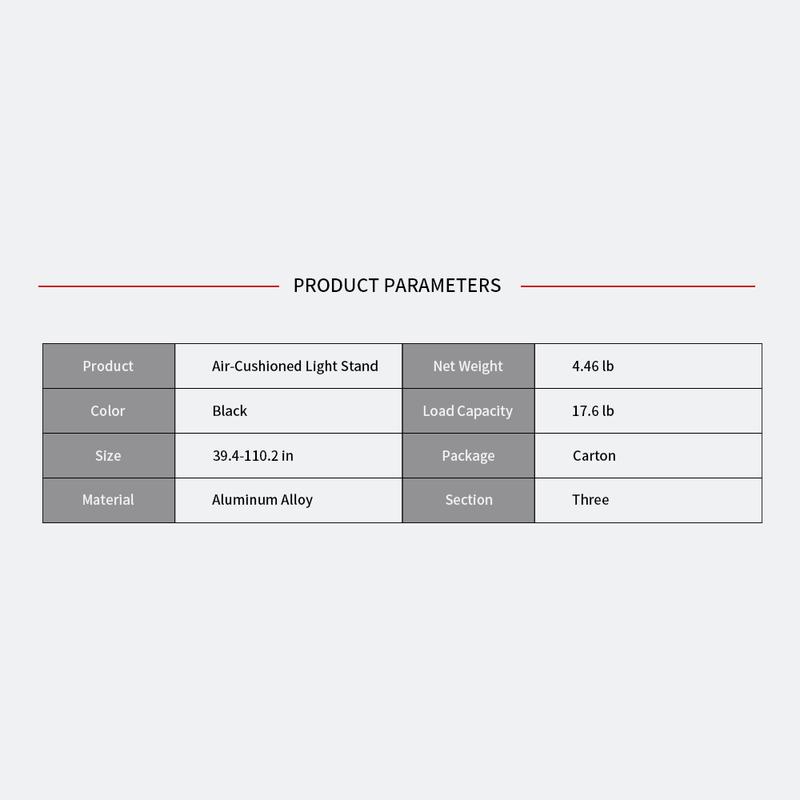 Air-Cushioned Light Stand can load amaran 60/100/200/F21/F22/P60 series and Aputure LS 60 series with compatible accessories, or a LS 300 light with Light Box 45x45 or Lantern 90.