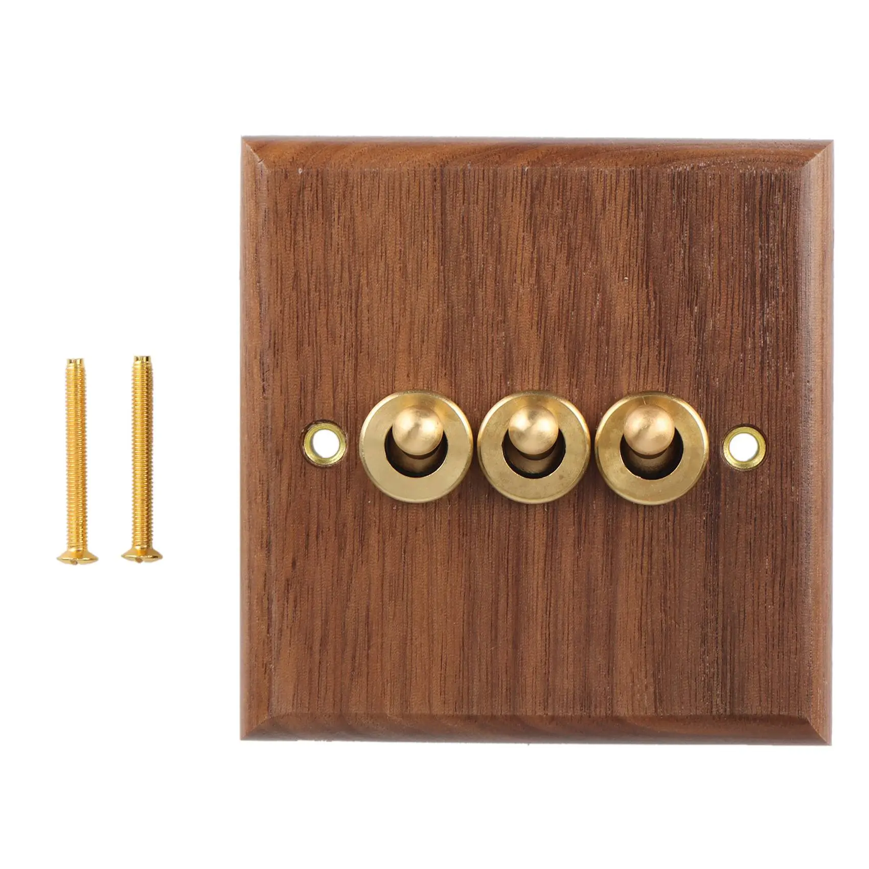 Retro American Industrial Style Light Switch Socket, Solid Wood Brass Toggle Switch Plate, Antique Home Stay Switch(3)