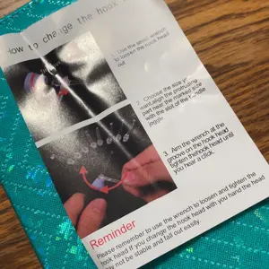 Its really cute it got here pretty fast ready to change out the different hook heads, i think it's comfortable to hold the light is bright enough for me it has to settings bright and dim. The case is very cute I wish they had different colors. Overall I really like it and I'm happy with my purchase.