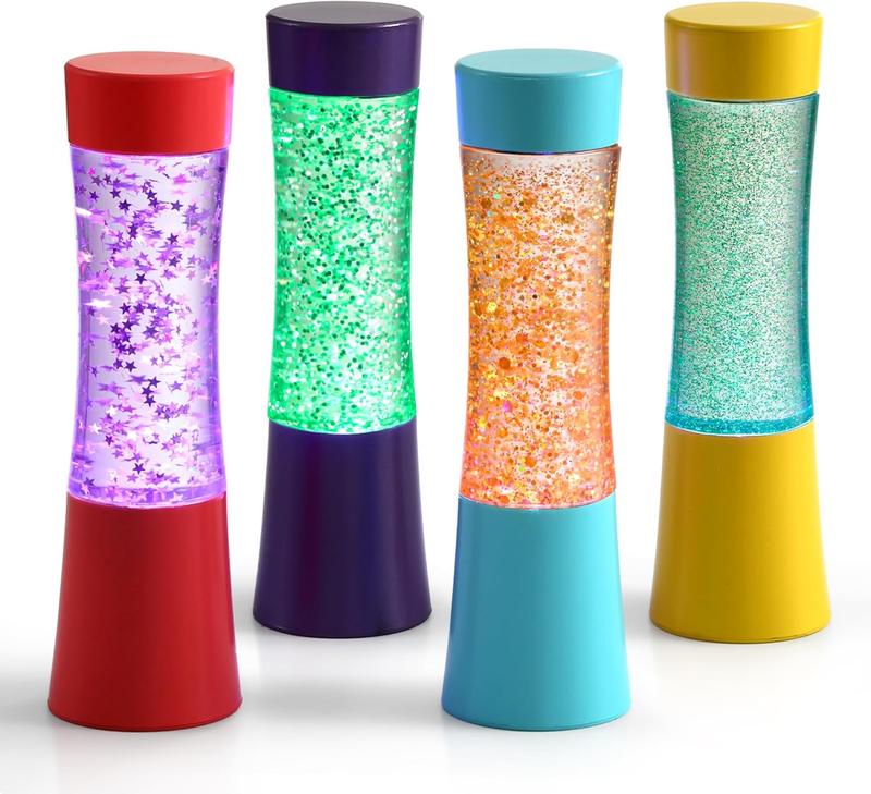 Each sensory tube features a manual on/off light switch that illuminates the liquid in bright, colorful tones, enhancing the visual experience. Whether used at home, in the classroom, or at the office, these glitter tubes provide a soothing way to unwind, refocus, and take a mental break.