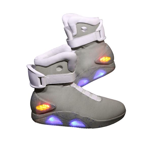 While most of the things we wanted to see come to life from Back to the Future II just haven't materialized just yet, we're proud to offer at least one vision of the future that you can have in your home. And these... you can actually wear them! These licensed costume shoes look just like the ones worn by Marty McFly when he wore the gear of the future, and you can now you can rock these iconic kicks with whatever outfit you like.