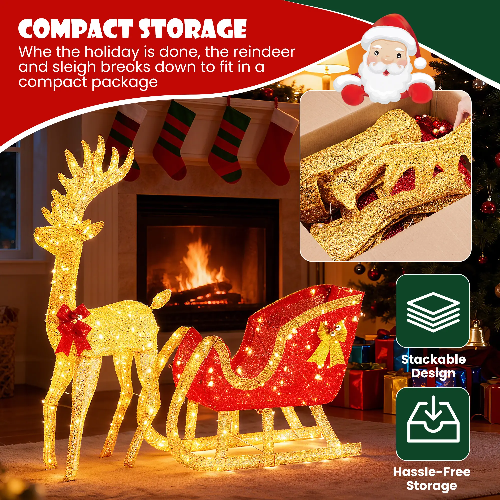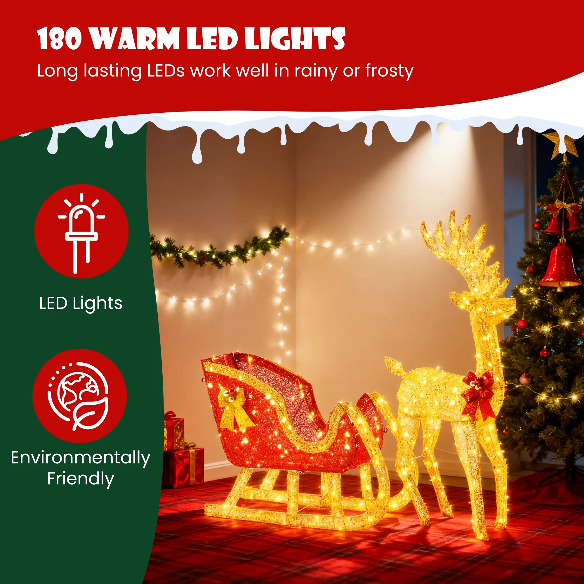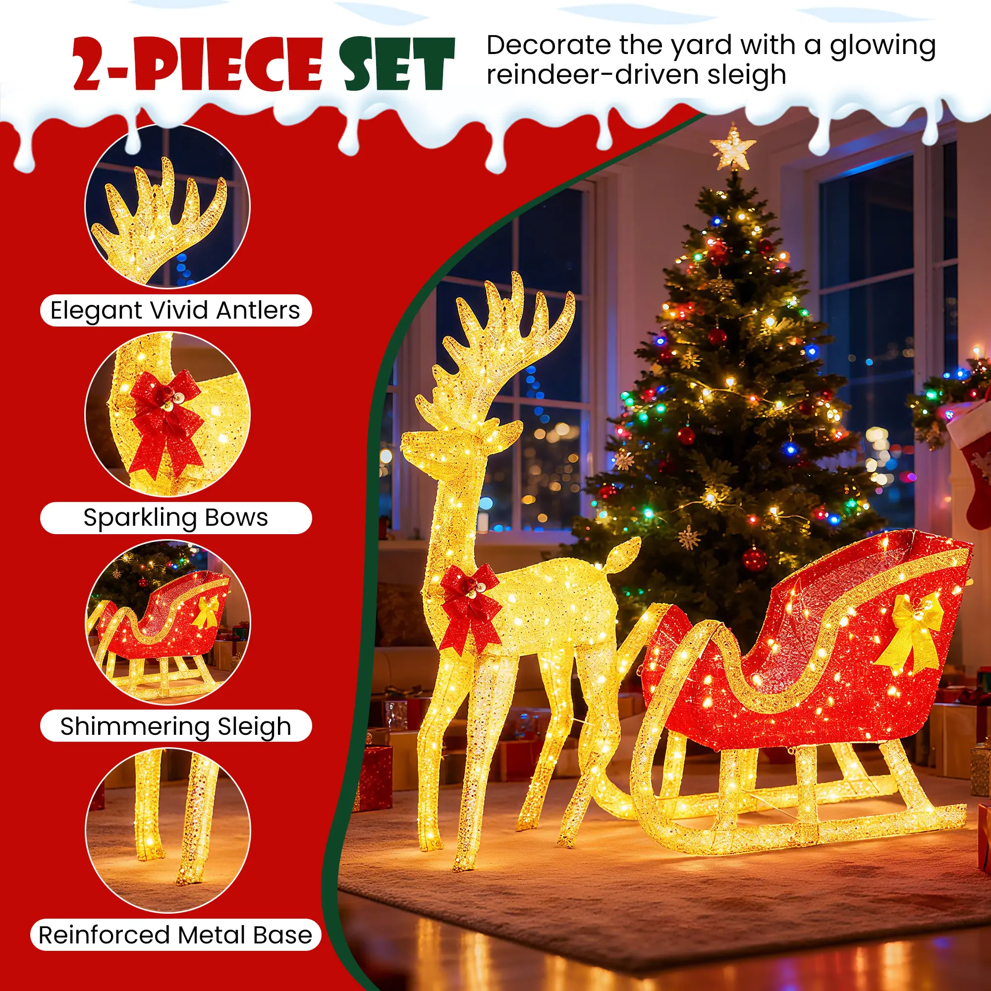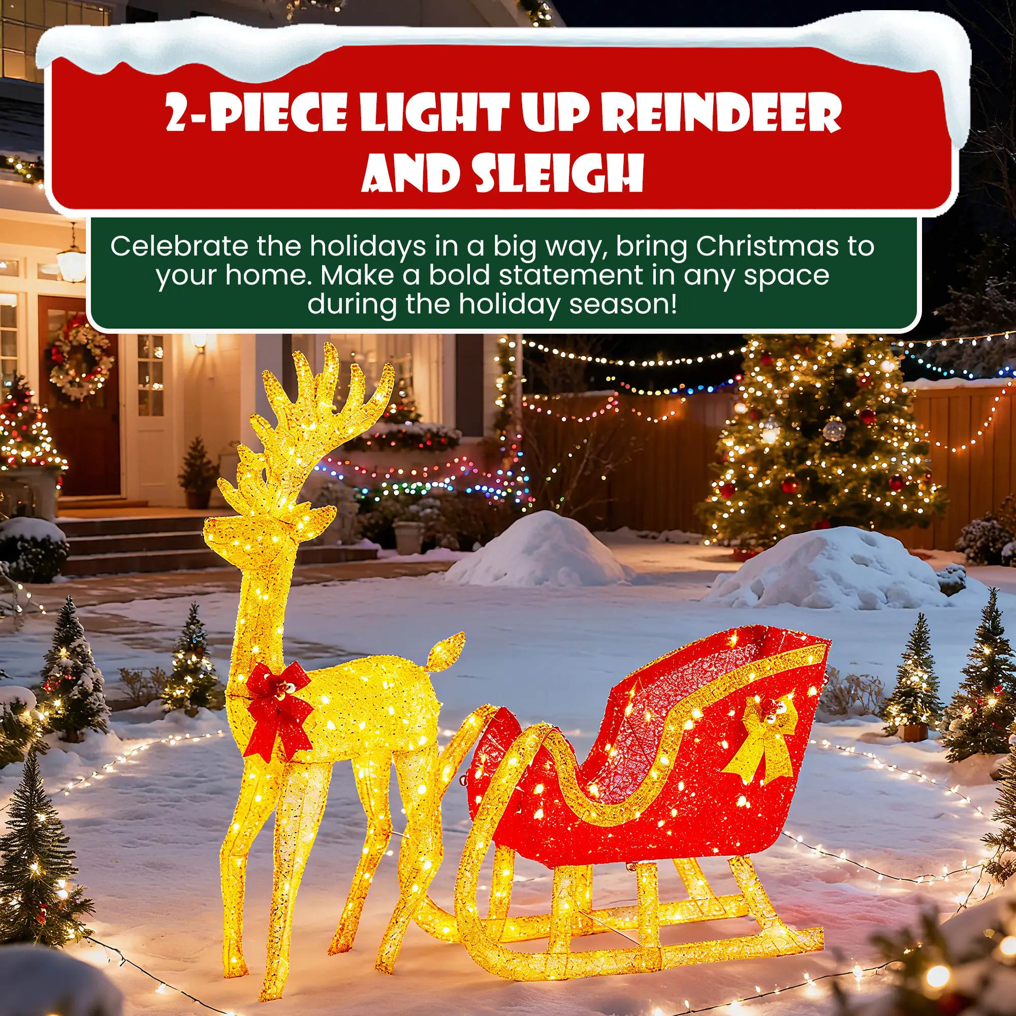 ·2-PIECE SET: Light up your front yard and celebrate the winter months with a glowing reindeer pulling Santa's sleigh