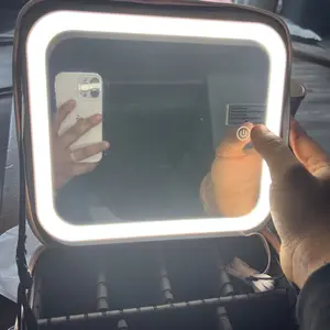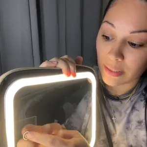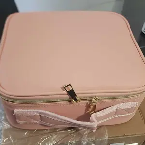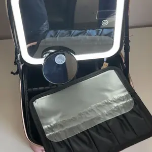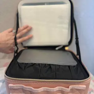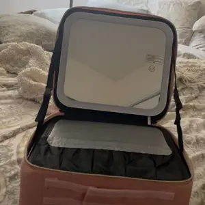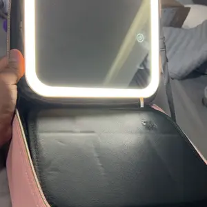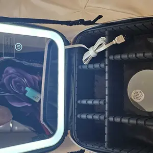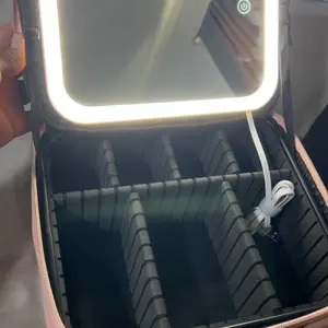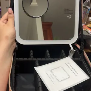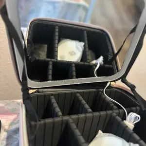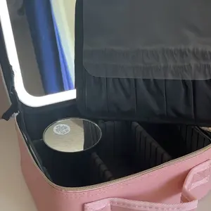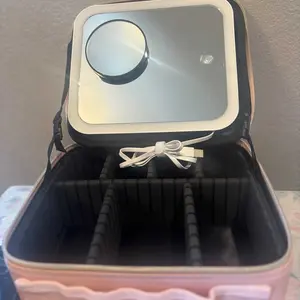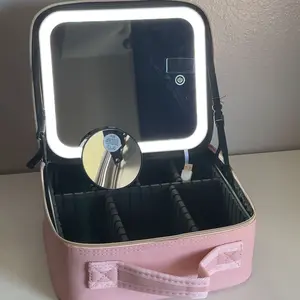 Ya recibí mi paquete Makeup bag para mi viaje! ♥️ trae adaptador para cargar la luz y un espejo adicional. También tiene muchos espacios para poner tus brochas y demás cosas que usamos nosotras las mujeres y el color lindo.