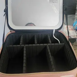 This is my very first makeup bag and I am not dissatisfied at all I absolutely love it!! Perfect for travel and will fit all my makeup I will definitely be getting more and my favorite part is the led mirror and light this is perfect!!