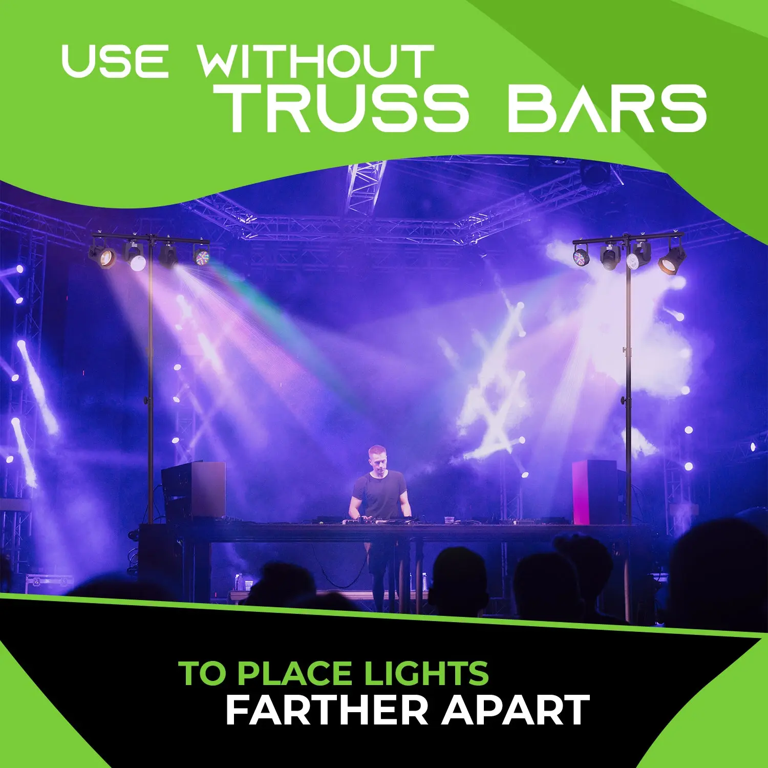 ·Flexible Modular Design - Use the complete rig, or adapt the system to your exact needs for each live DJ gig. You can use one 5 ft. truss bar instead of two, or even use just the two stands with T-bars to place lights even farther apart than the trusses can reach.