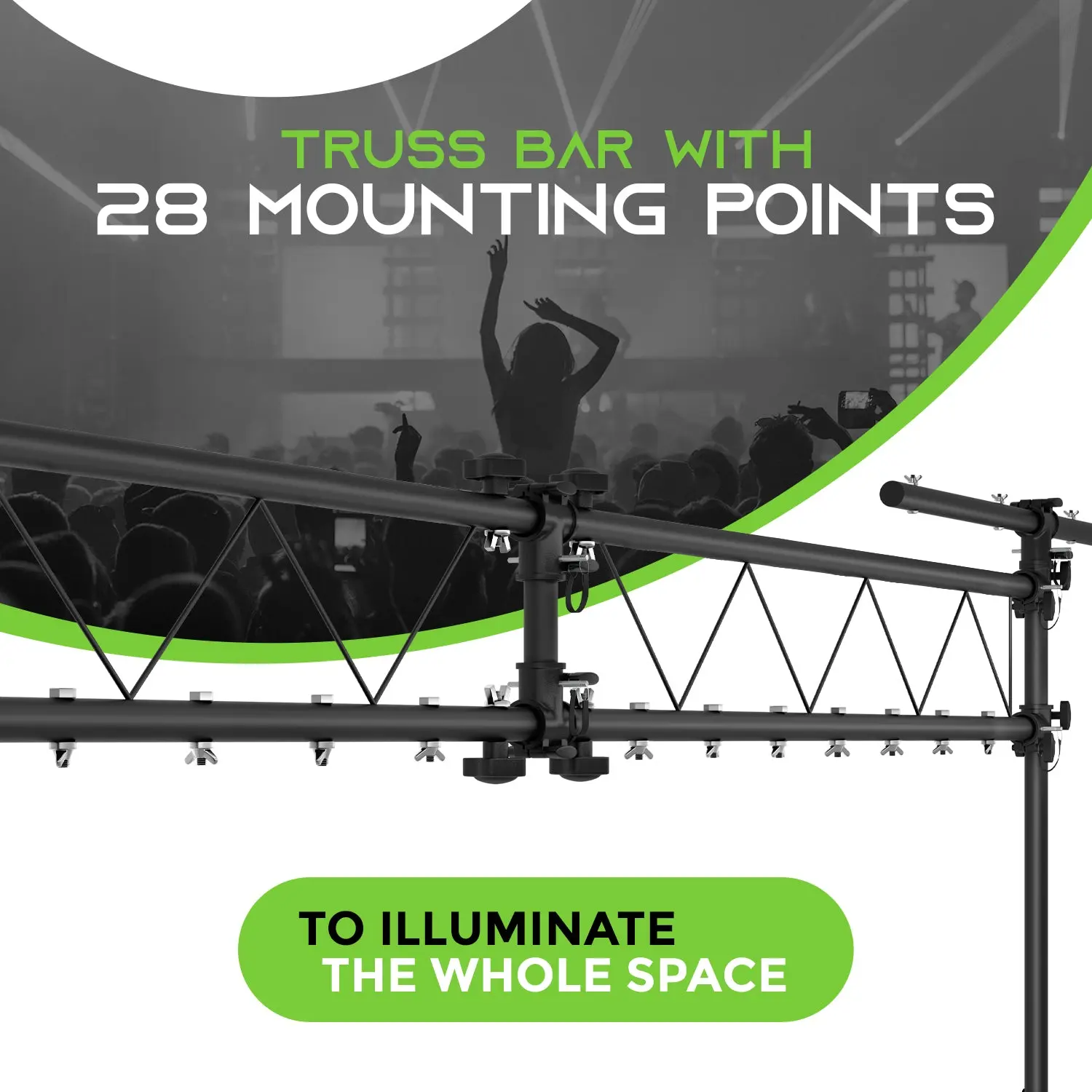 ·36 Total Mounting Points - Installing a professional truss lighting system has never been easier, with 36 mounting points for rigging PAR cans, lasers, wash lights and anything else you need to set the mood at an event, venue, business or any space where you need a pro-grade lighting structure. Mounting hardware included.