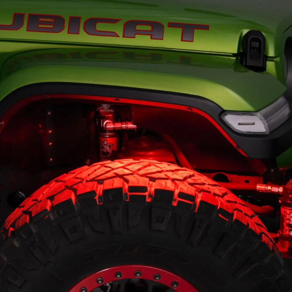 The RGBW Rock Light Kit offers vibrant, customizable colors and intense brightness. Choose between two models to tailor your setup. Each light features a durable, waterproof metal casing, ideal for off-road enthusiasts. Available in 4-pack.