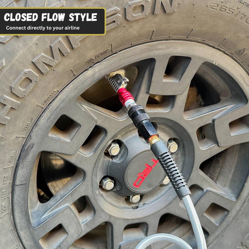 ·CLOSED FLOW: Air will only pass through if the chuck is engaged with the tire valve stem.