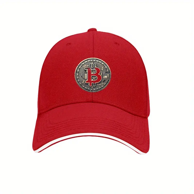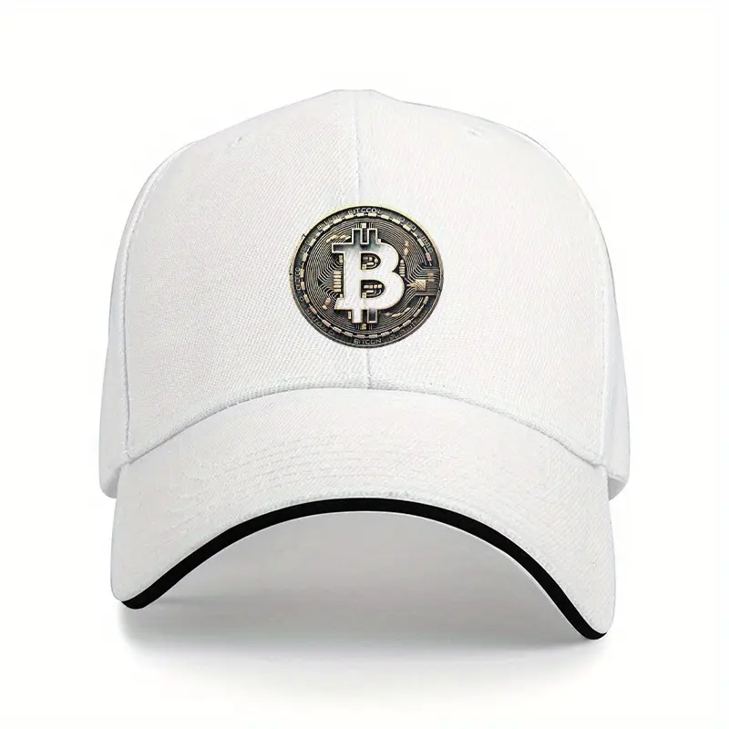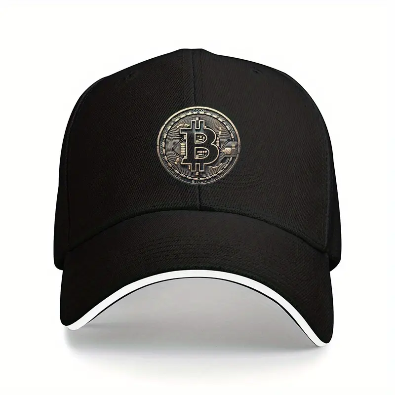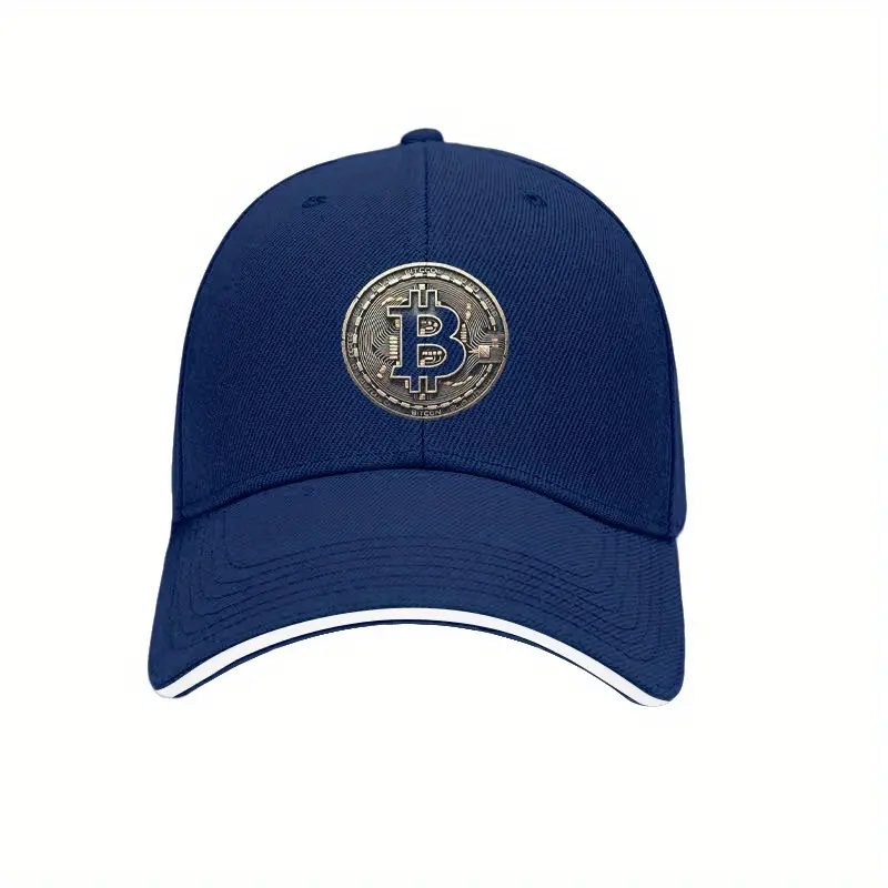 [Adventure Ready, Bitcoin Logo Cap] Lightweight Adjustable Bitcoin Logo Baseball Cap | Soft Polyester Dad Hat with White Accents, Ideal for Outdoor Activities, Fit, Outdoor Headwear, Sleek Cap Design, Durable Headgear