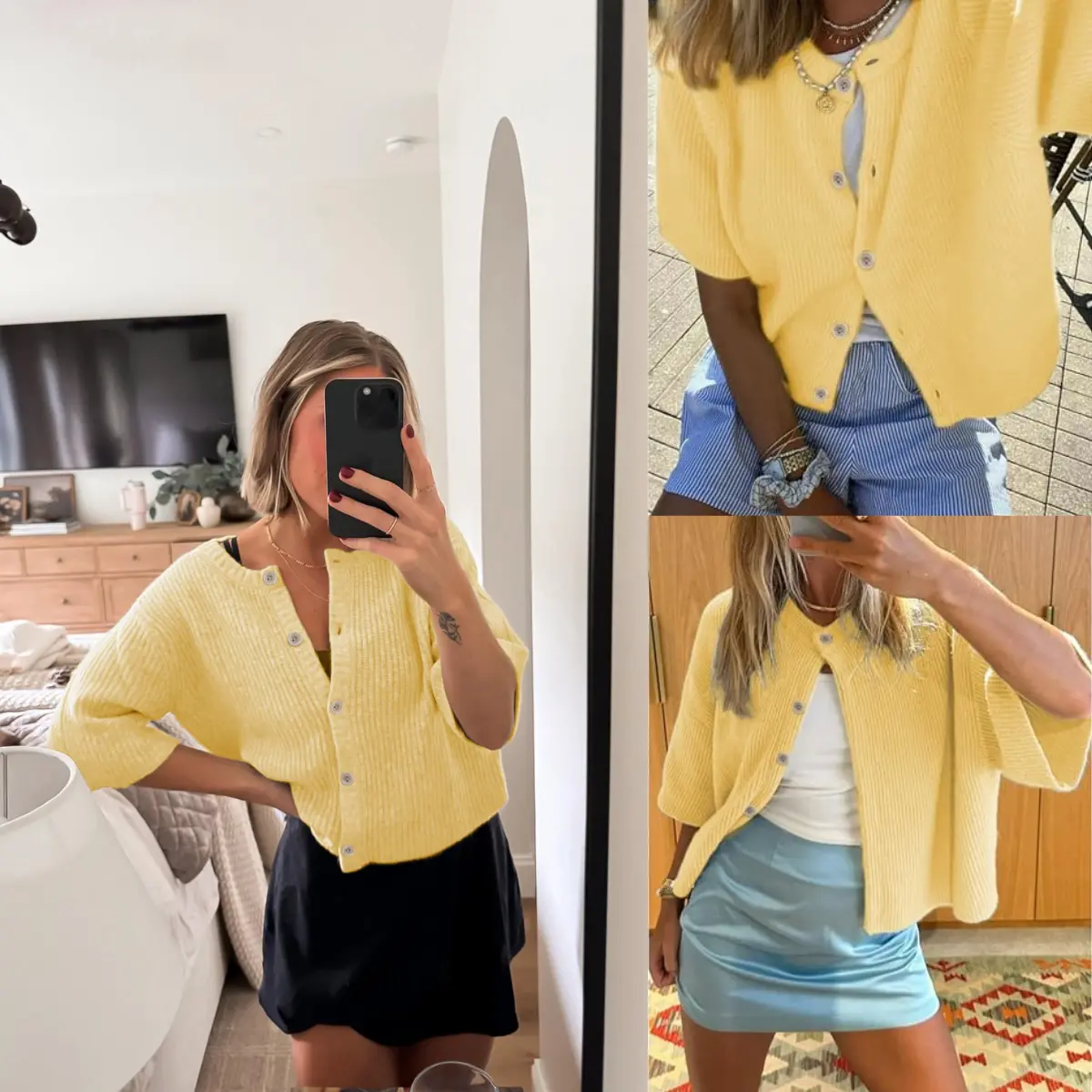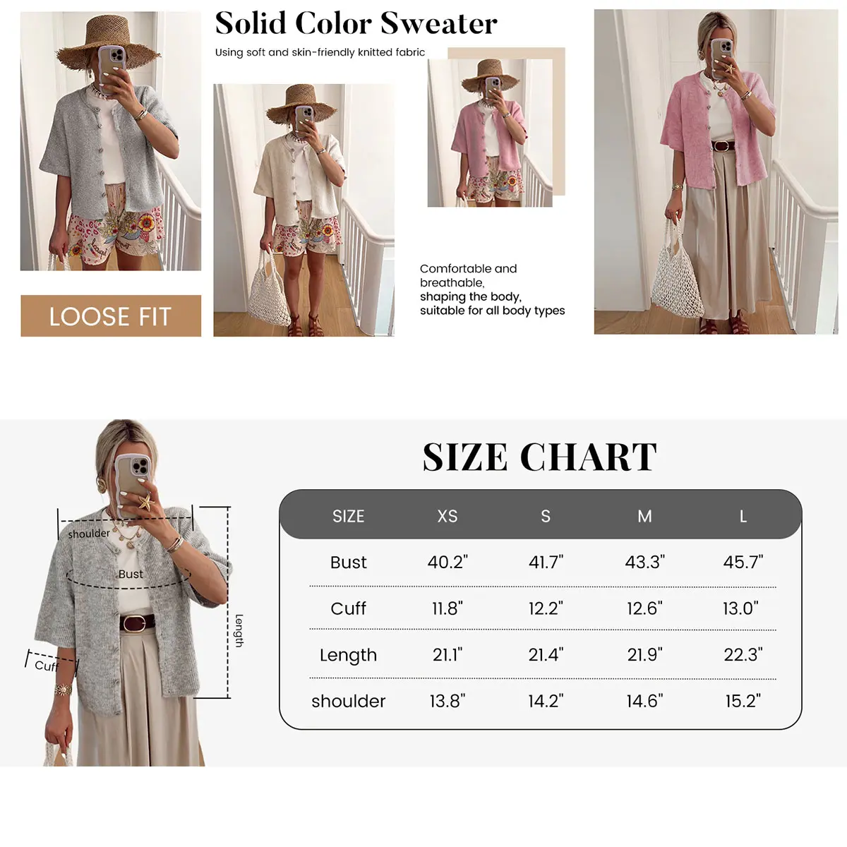 Pair this cardigan with white ruffled skirts, jeans, shorts, or layered over dresses. The neutral tone allows for easy styling with different accessories and footwear, perfect for creating an elegant, everyday look