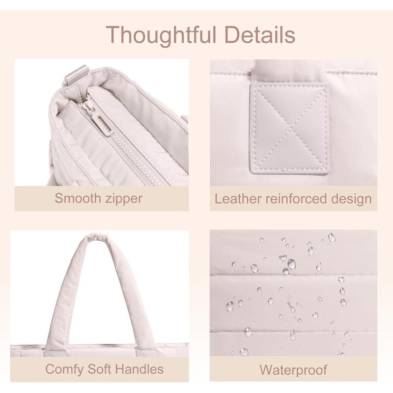 【Lager Capacity】: Size:17.7*5.9*9.8 inches,Capacity:25L,This puffer Tote Bag can hold 15.6''laptop,wallet,iPad,umbrella,cosmetics,clothes and other daily necessities,free your hands and make traveling easier!