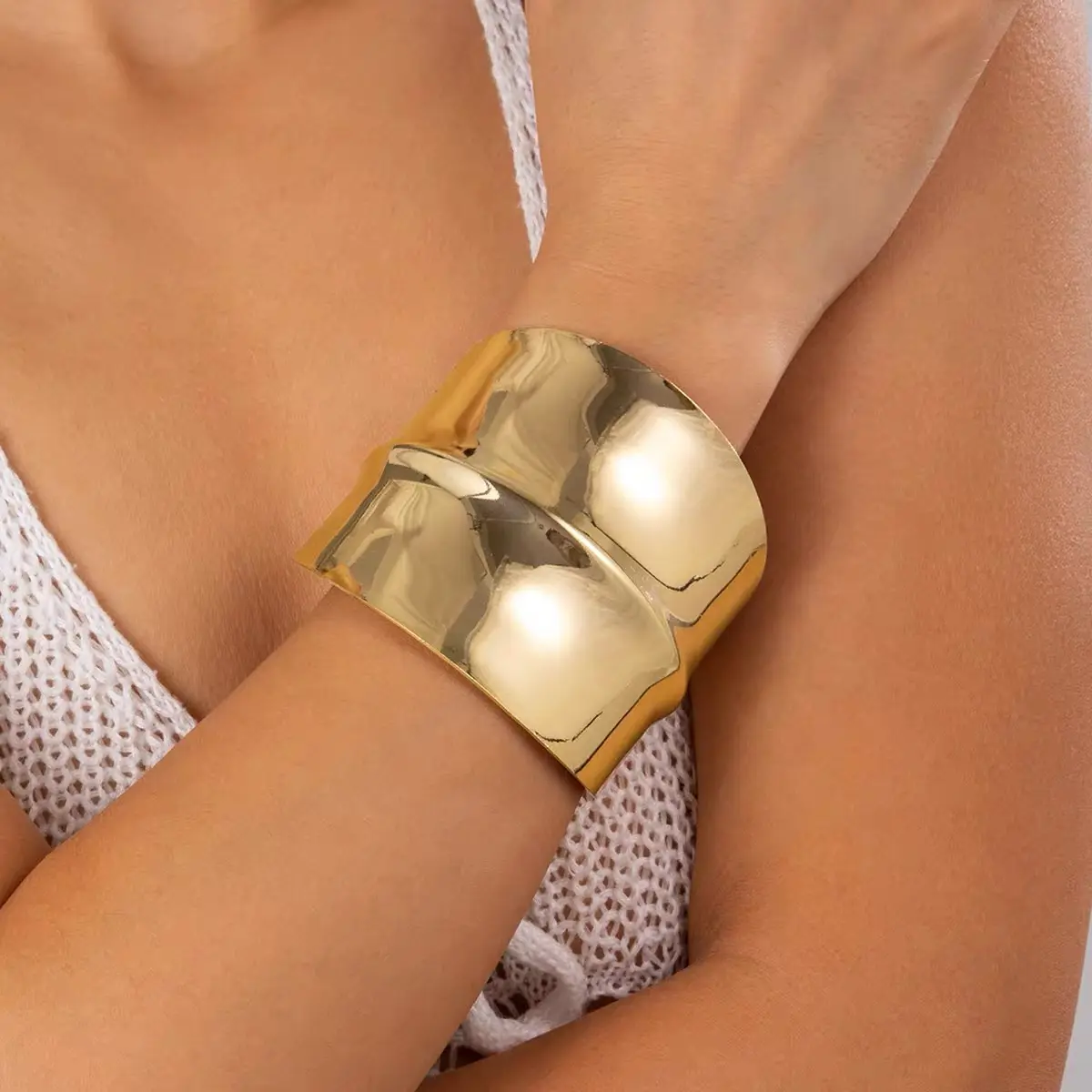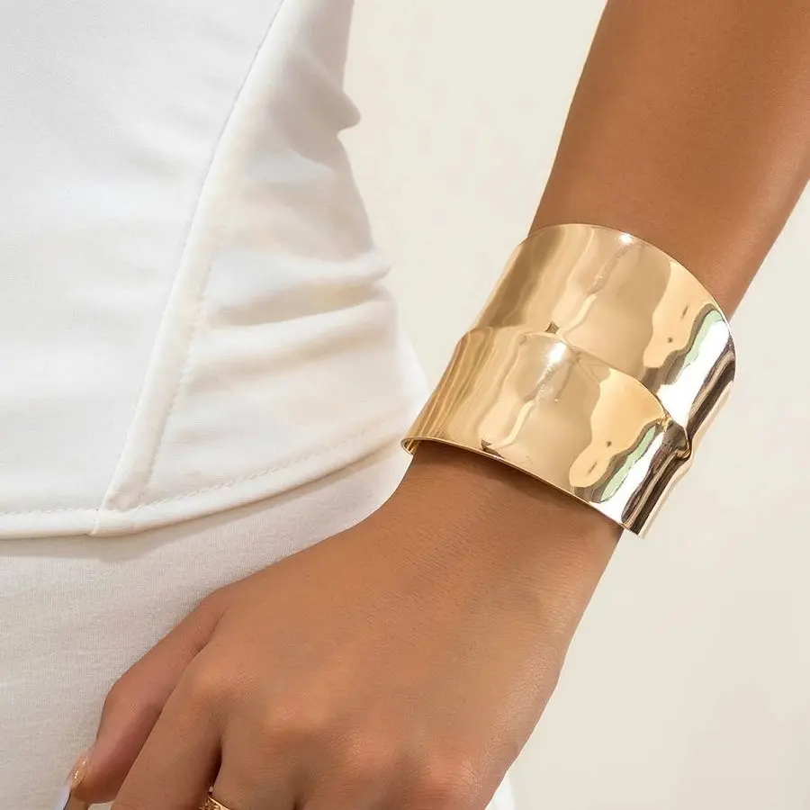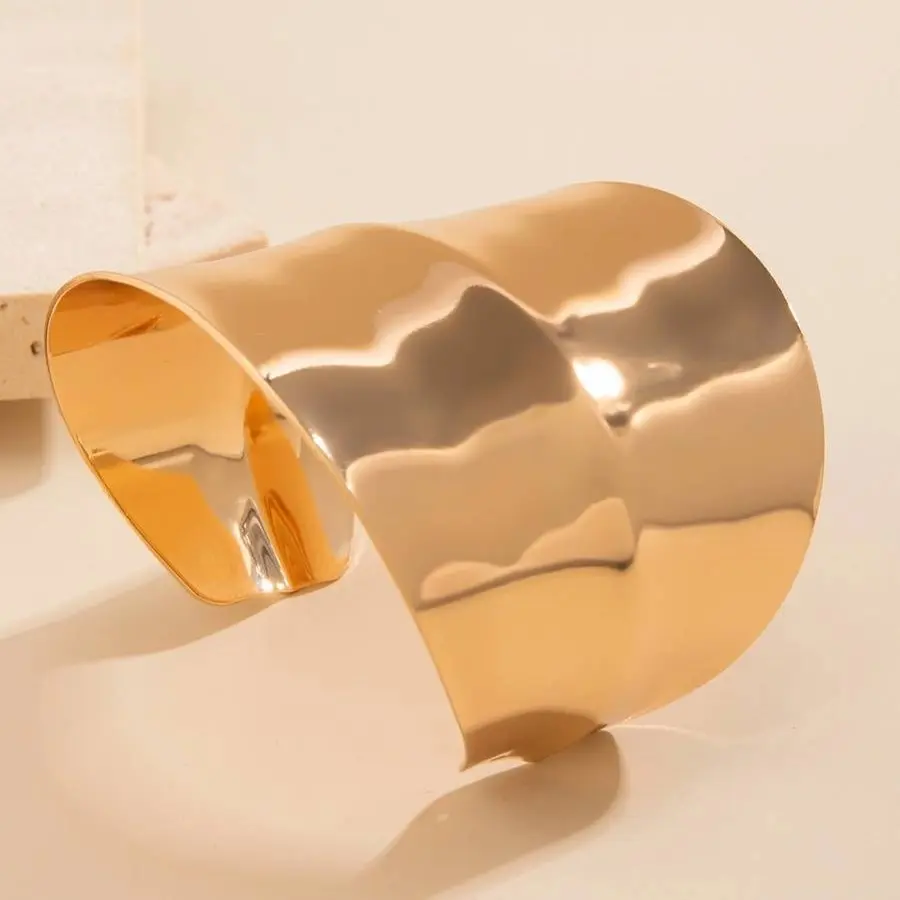 ·Oversized, Wide Cuff: Features a bold hammered texture, creating dynamic light reflections.