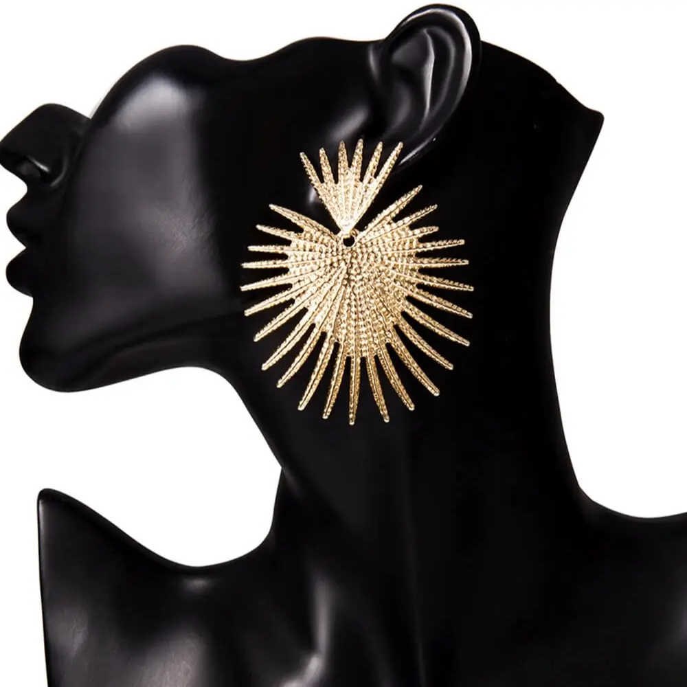 ·Vintage Sunburst Structure: Features a double-layered 3D sunburst silhouette and a mini inner disc connecting to the ear post. Creates visual depth. 🌞