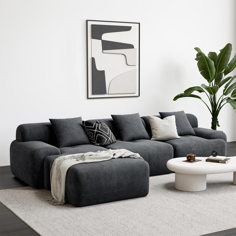 ·Flexible Modular Combination: Unleash creativity with modular magic! Each unit can be moved and reconfigured into chaise lounges, accent chairs, or sectional sofas. The three main seats include hidden fastening straps to securely connect them as a 3-seater (ottoman is movable by design). Adapt effortlessly to your lifestyle—whether hosting guests or relaxing solo