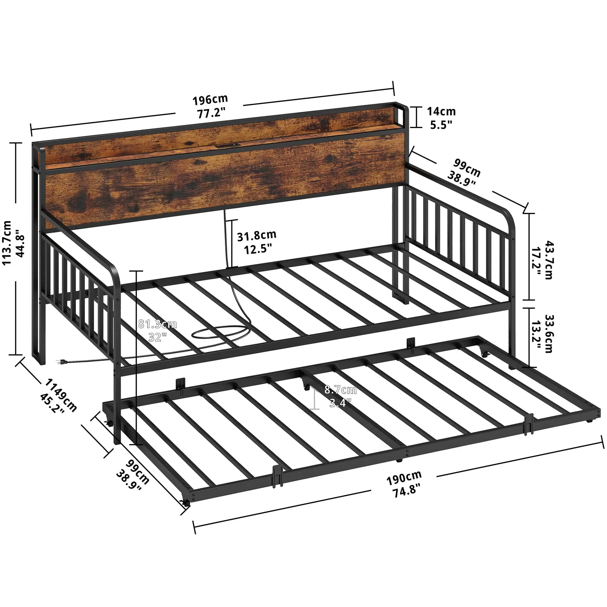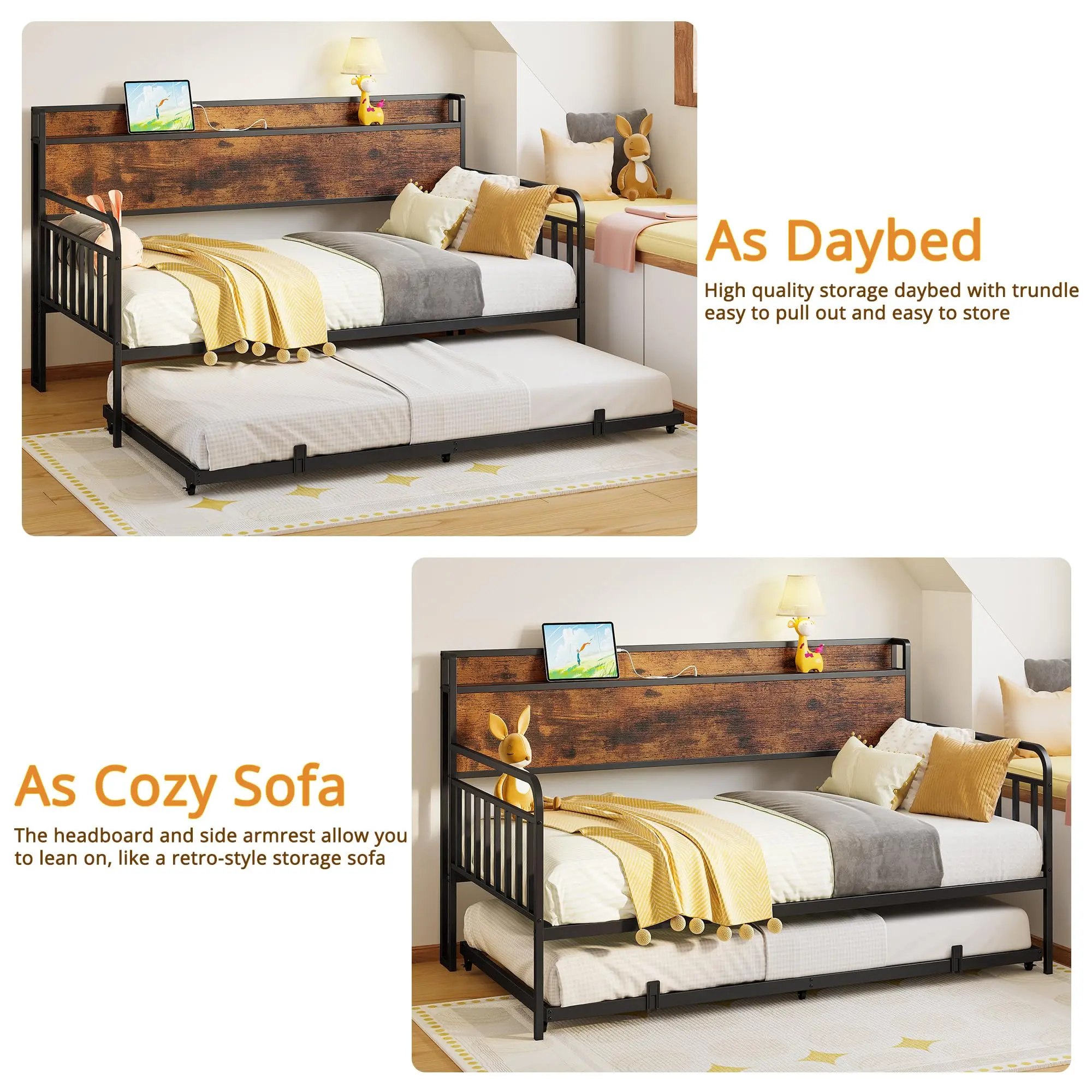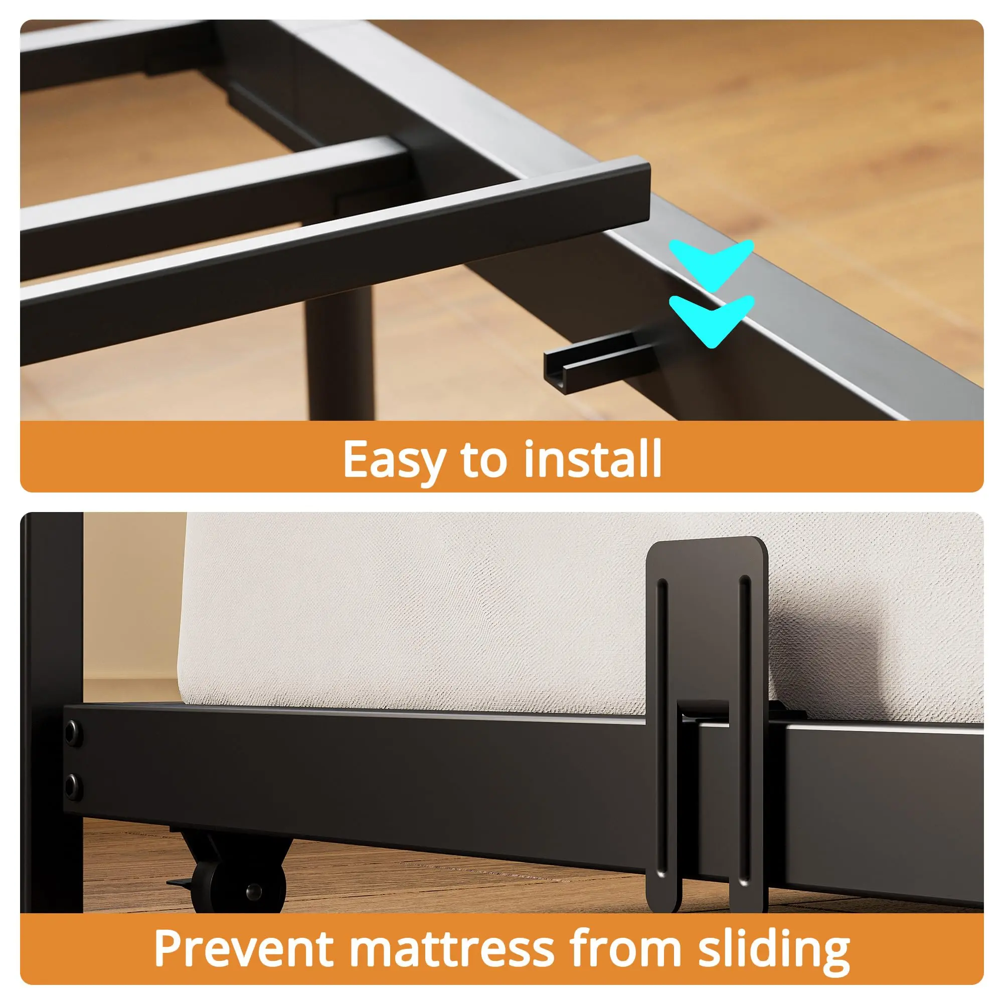 Stable and Quiet: No wobbling when jumping, no noise when sleeping! Reinforced metal frame and sturdy legs support 700 lbs for single beds and 400 lbs for pull-out beds. Silent slats and anti-slip pads ensure no creaking when turning over or getting up at night