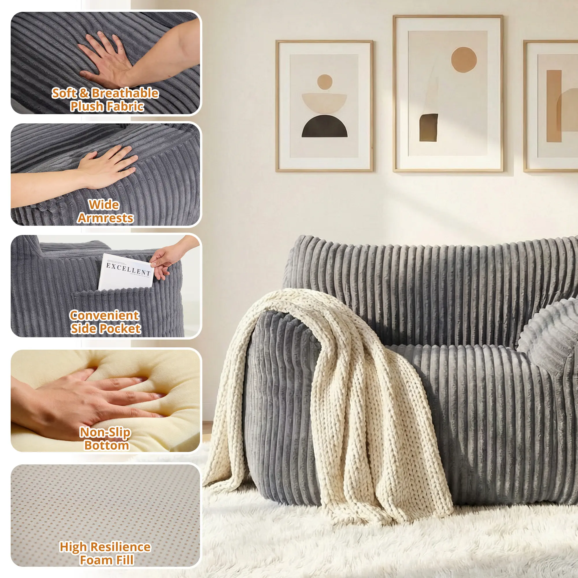 Multi-Scenario Use:The simple modern design paired with retro corduroy texture blends seamlessly into various home décor styles. Perfect for the living room, bedroom, study, game room, dorm, and more—supporting leisure, reading, entertainment, and other uses.