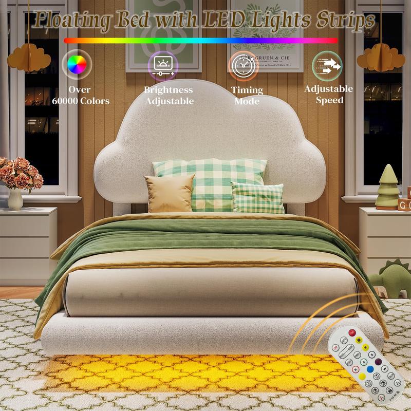 ·Multicolor LED Ambiance: Equipped with LED strips, the twin xl cloud bed offers over 16 million color options and various modes (such as speed adjustments, music synchronization, etc.), allowing you to customize the light show according to your mood