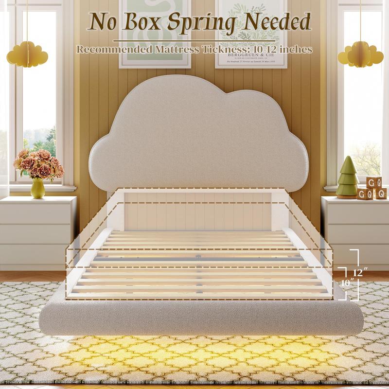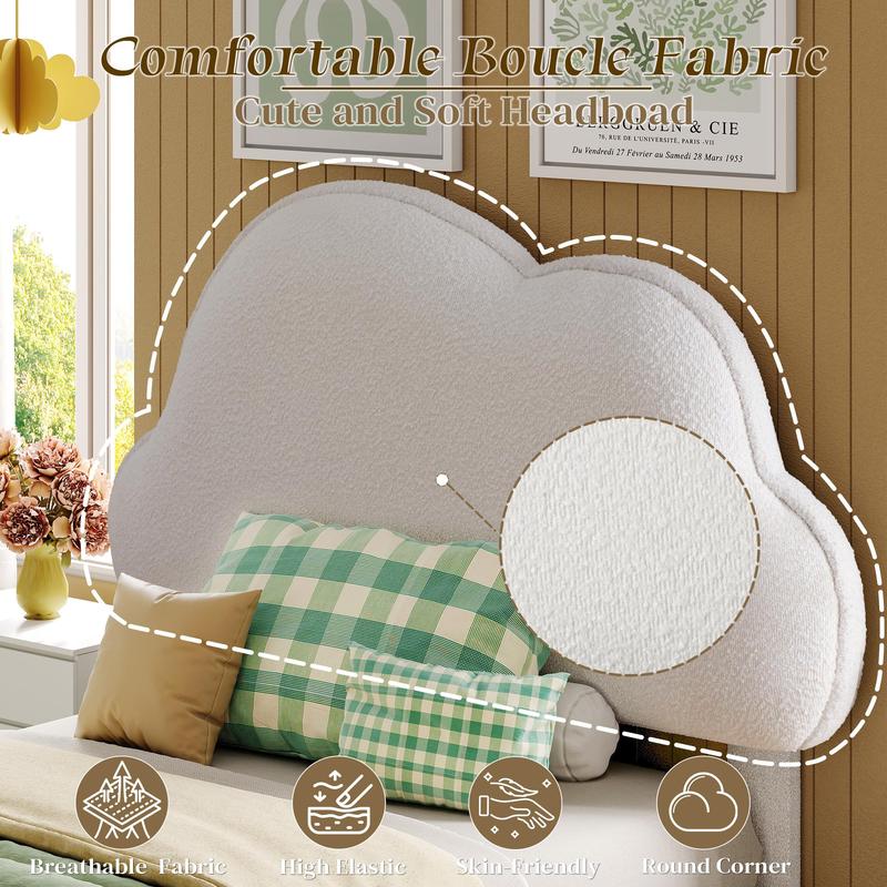 ·Luxurious Boucle Fabric: This twin xl bed is crafted from high-quality boucle fabric, complemented by a cute cloud-shaped headboard. It offers a soft, fluffy, and breathable touch, adding warmth and a dash of whimsy to your bedroom