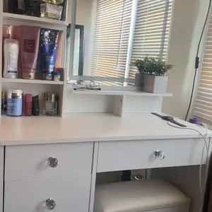 ·A Dressing Table That You Can't Put Down:If you're looking for an exquisite dresser, don't miss this elegant vanity table and stool set. It features 5 drawers, 5 open shelves, and a mirror with LED light strips. The large rectangular makeup mirror provides a wider view, making your makeup routine effortless.