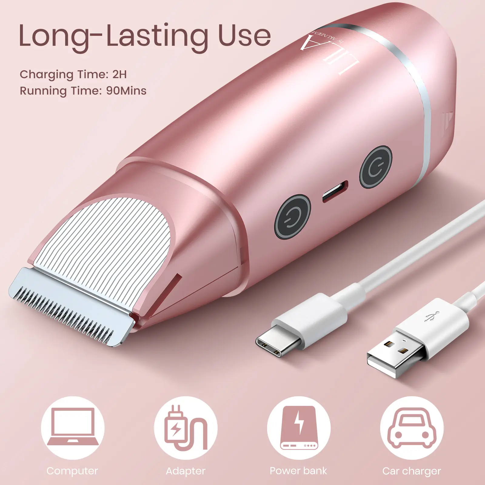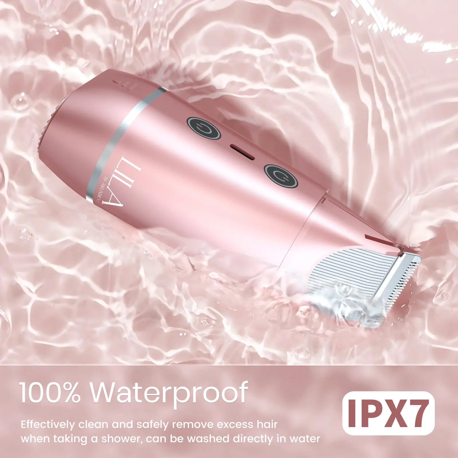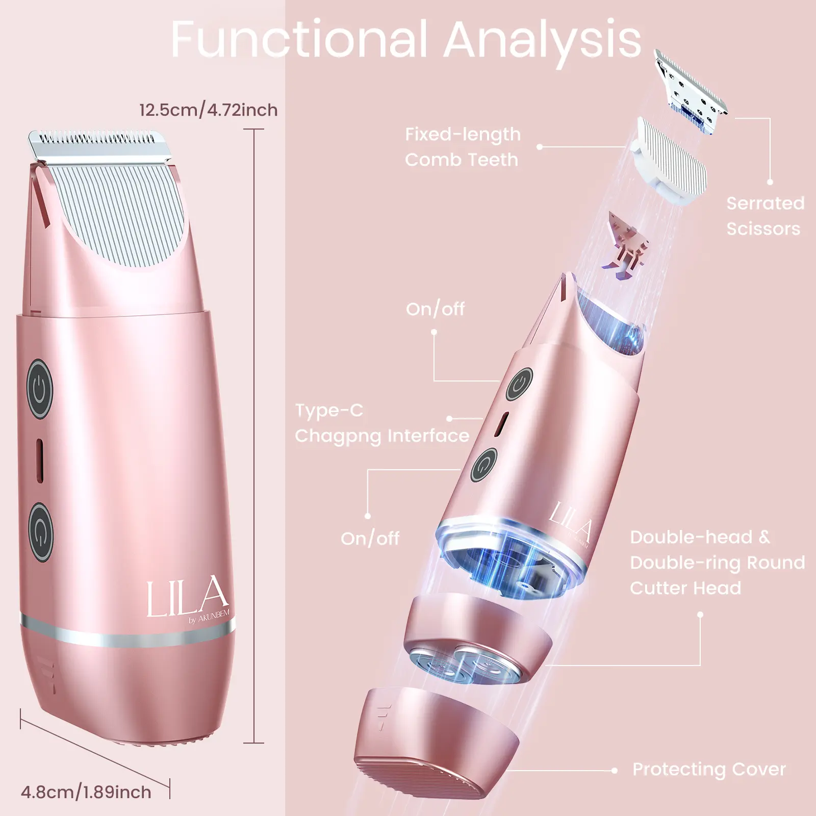 The LILA by AKUNBEM electric shaver offers a dual-head design for versatile grooming. Perfect for women, it trims bikini lines, underarms, legs, arms, and face. This innovative tool ensures smooth, clean hair removal. The IPX7 waterproof rating allows wet and dry use, making it convenient for any setting. Experience hassle-free hair management with this efficient shaver.