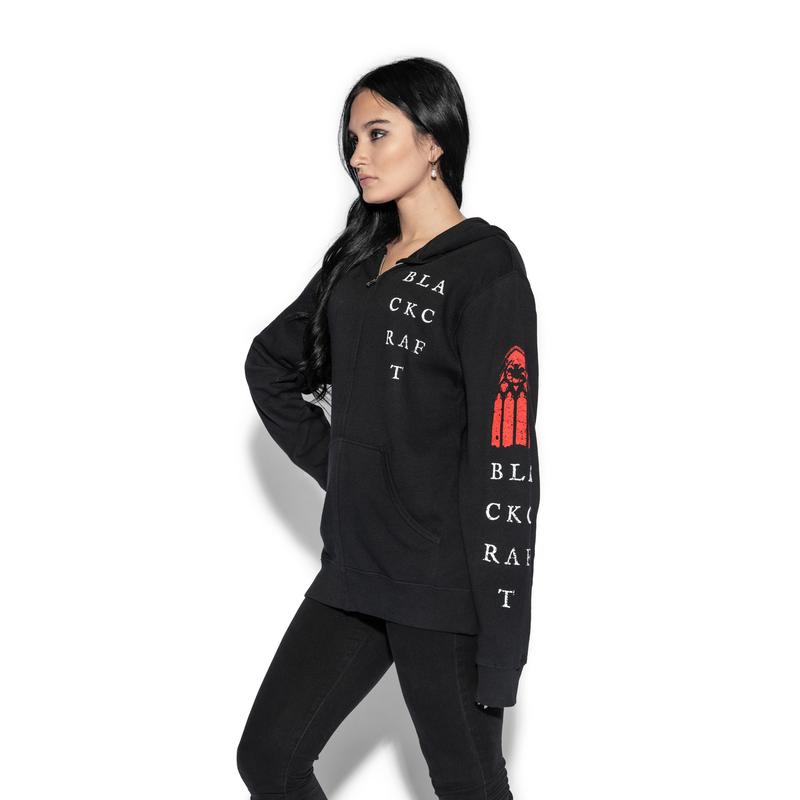 This classic fit zip-up hoodie is crafted from a blend of 80% cotton and 20% polyester, with a cozy brushed fleece interior and a soft yet durable finish. Featuring custom artwork on the front, back, and sleeve.