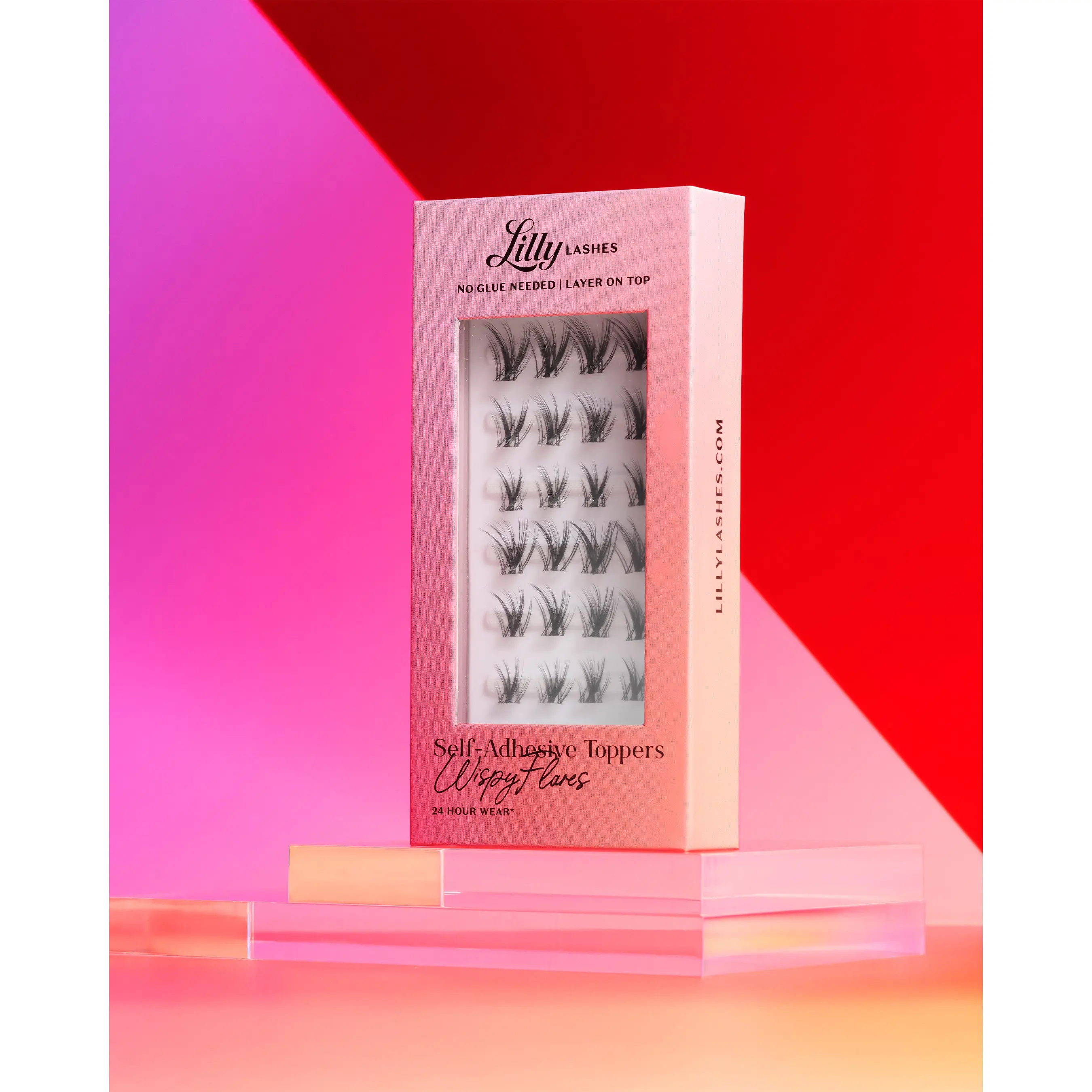 Classy, sassy, and never subtle. Don’t let their airy appearance fool you—Wispy Flares deliver bold, eye-catching impact where it matters most. Crafted with a spiked V-shaped design, these pre-glued toppers layer effortlessly over natural lashes for a flirty, anime-inspired finish, or stack seamlessly on your favorite Lilly Lashes for extra drama and definition.