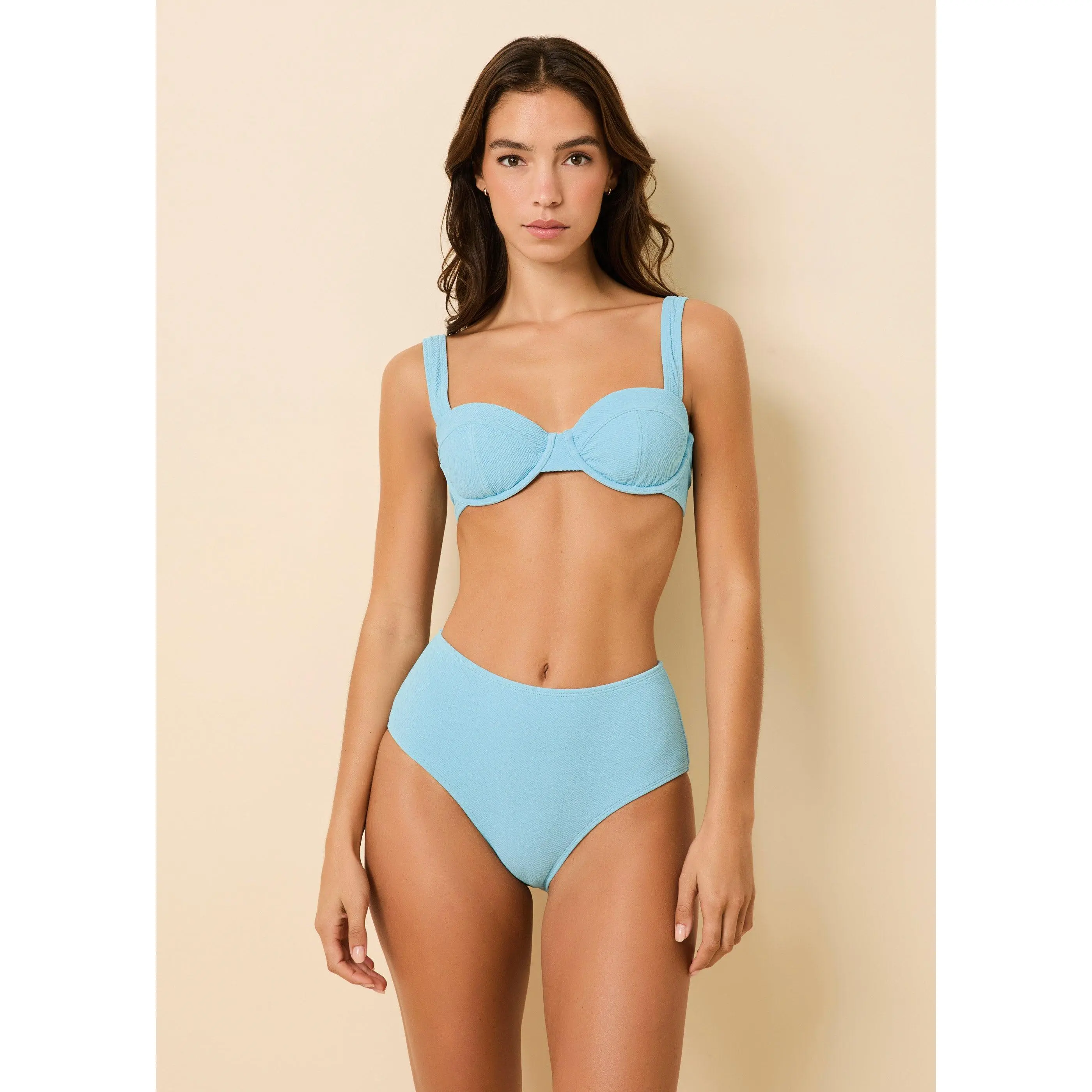 The Lilo Bikini Bottom in cloud terry fabric is the perfect retro-inspired swimsuit. This high-waisted silhouette offers moderate coverage. Pair with the matching Lilo Bikini Top.