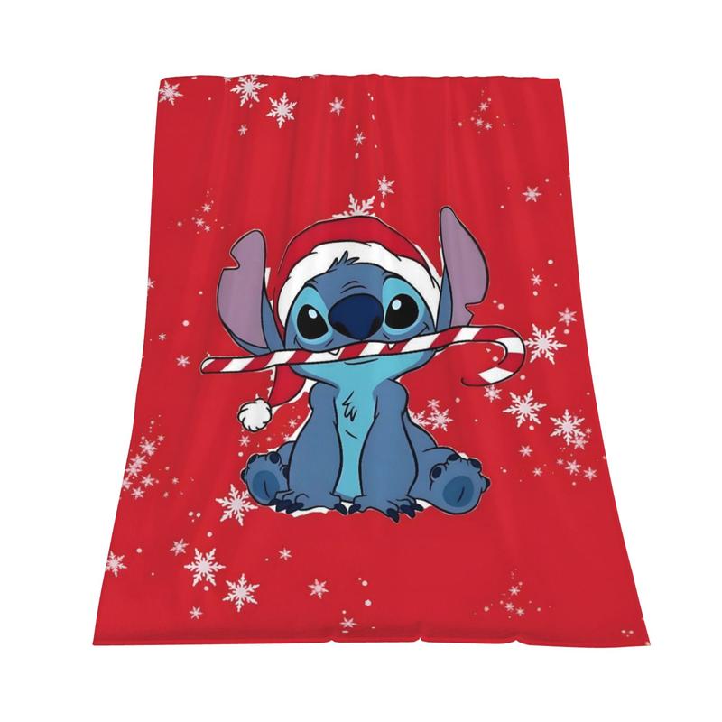5. DISNEY CLASSIC Lilo & Stitch Christmas Candy Cane Soft Throw Blanket - Cozy Plush Holiday Blanket for Bedroom, Sofa, Christmas Decor & Gift