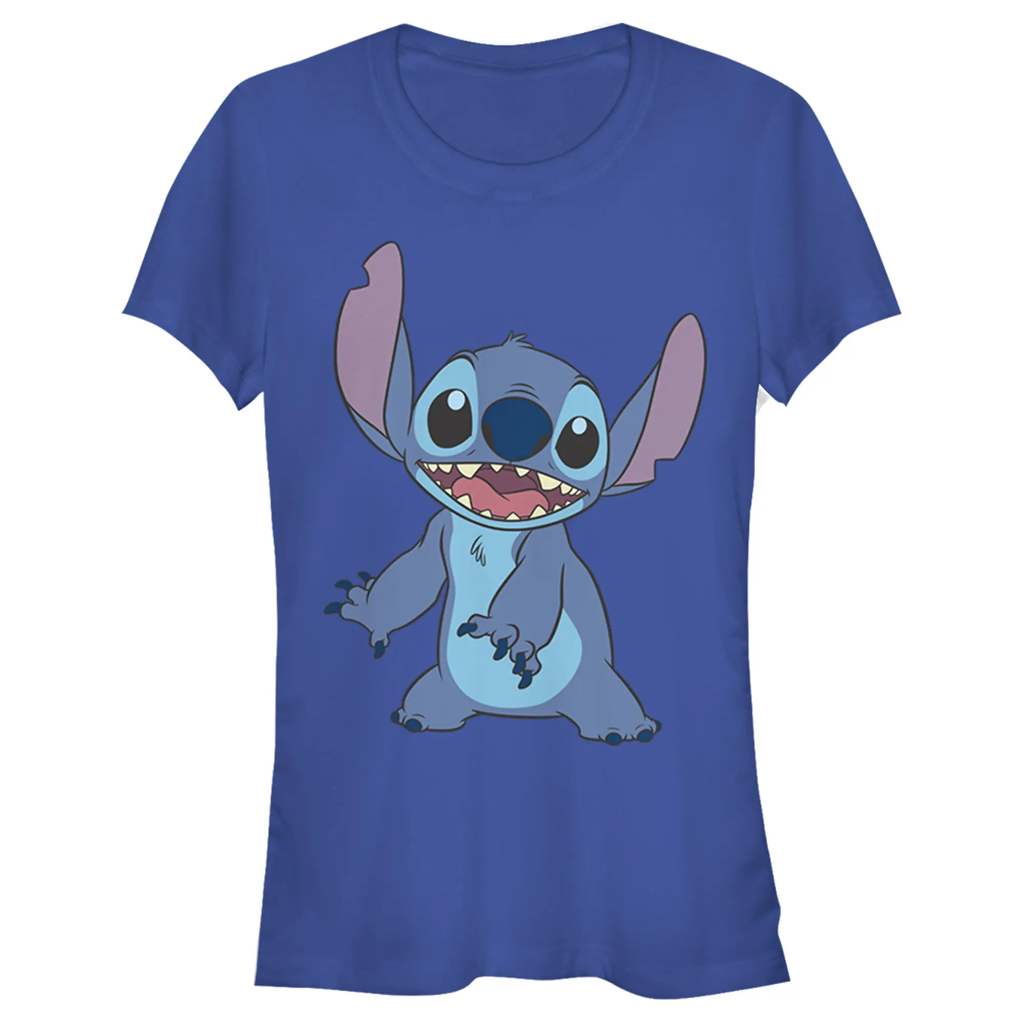 Strut your stuff with this stylish new juniors' t-shirt that is perfect for every occasion! Featuring a large graphic of cute little Stitch smiling happily across the front.