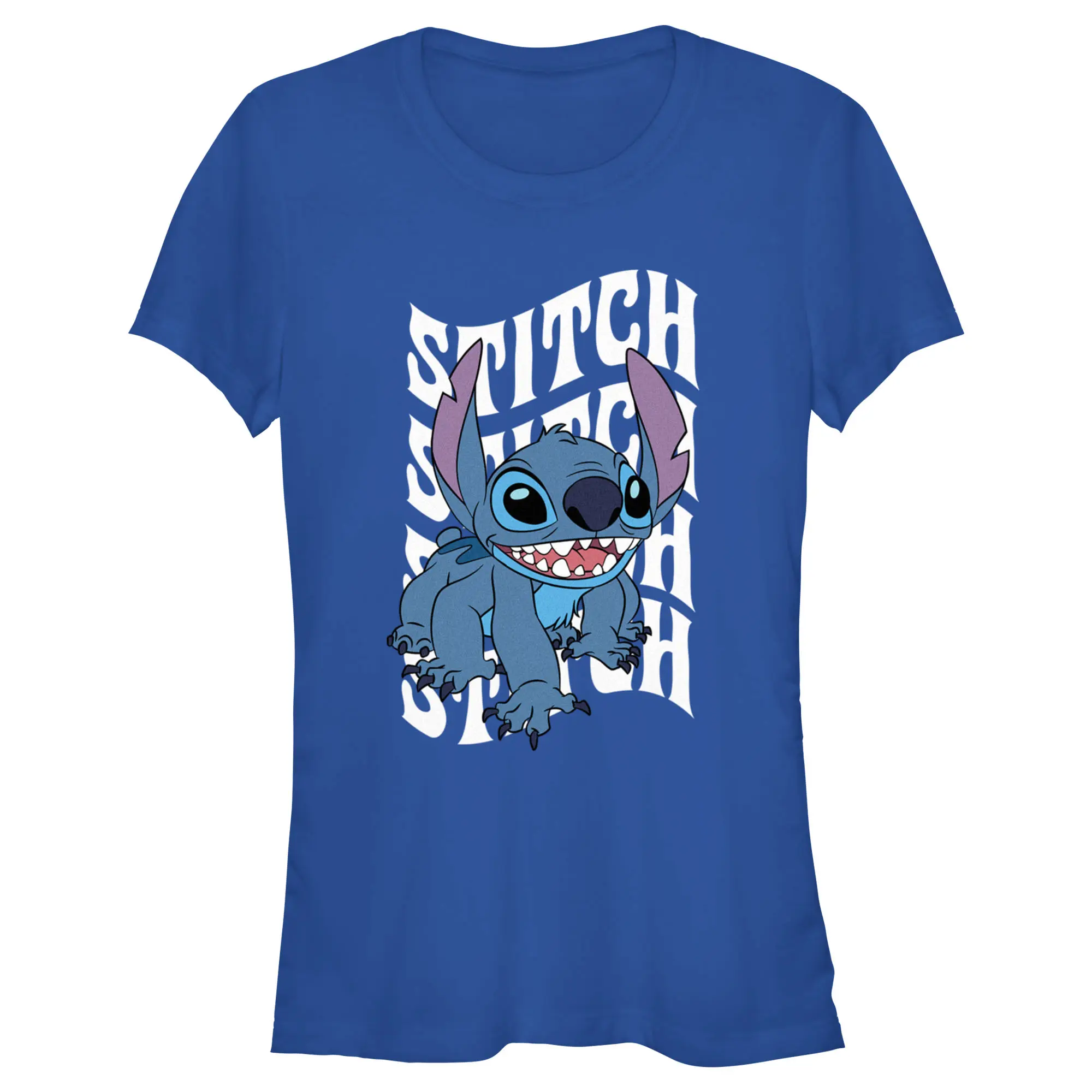 Ohana means family, and family means no tee gets left behind! Find the perfect style with this officially licensed Juniors' Disney Lilo & Stitch Wavy Alien Graphic T-Shirt! This design features a six-armed Stitch printed across the front, along with his name repeated in wavy white font in the background. Celebrate a certain alien, otherwise known as Experiment 626 in style this year with new hilarious apparel from the movie!