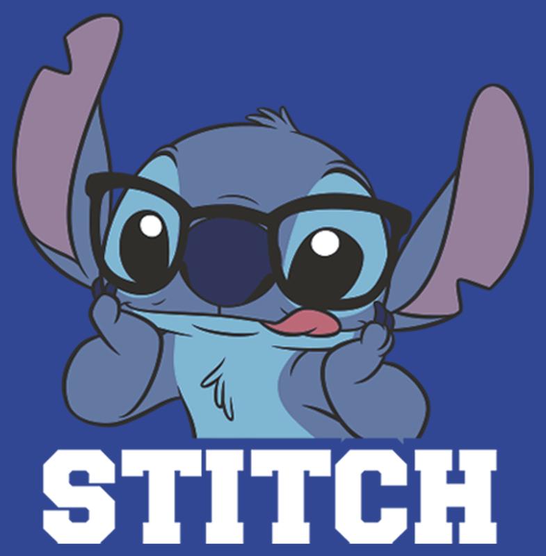 Featuring Stitch wearing silly black glasses!