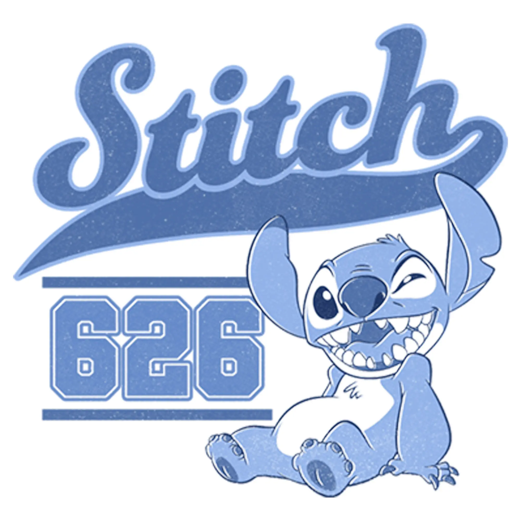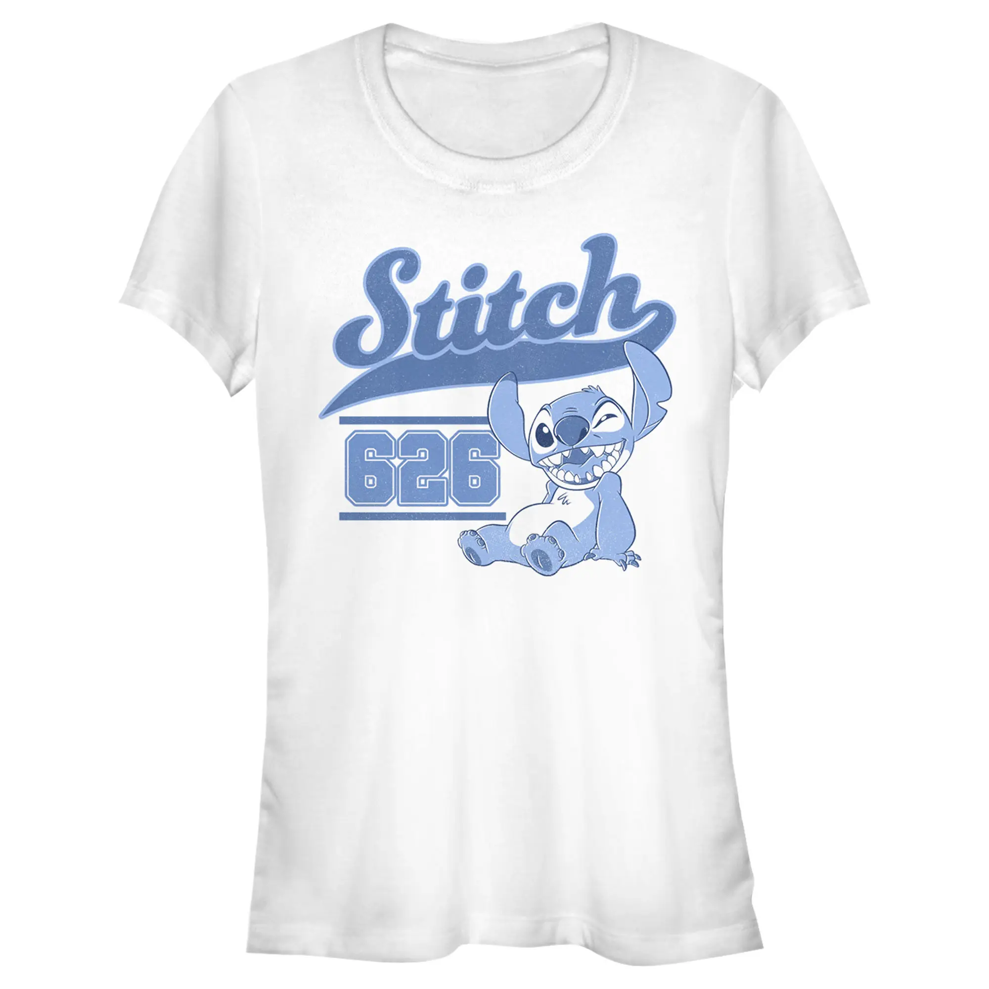 Ohana means family, and family means no tee gets left behind! Find the perfect style for your family with this officially licensed Juniors' Disney Lilo & Stitch White Collegiate 626 Graphic T-Shirt! This fun design features a cute graphic of Stitch winking alongside the number "626" and his name in blue lettering across the front. Celebrate a certain alien, otherwise known as Experiment 626 with new fabulous apparel from the incredible movie!