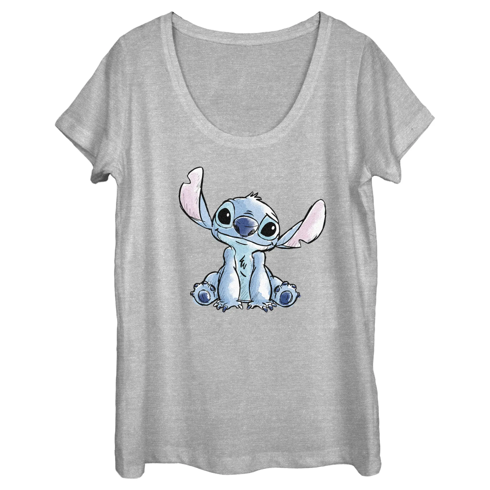 Strut your stuff with this stylish new women's scoop neck t-shirt that is perfect for every occasion! Featuring Stitch sitting cutely across the front in an artistic watercolor style.
