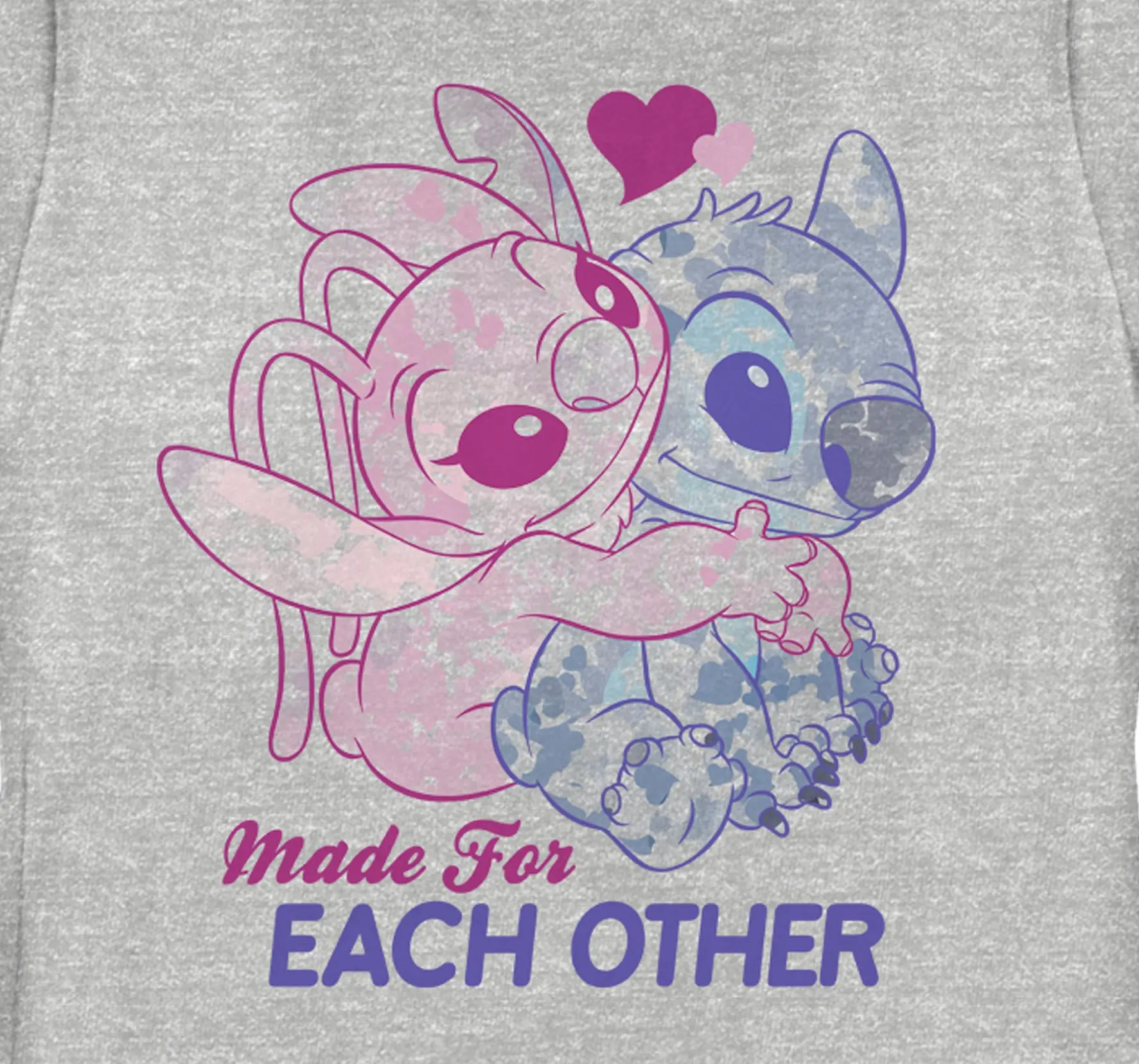 Ohana means family, and family means no tee gets left behind! Find the perfect style for your family with this new Women's Disney Lilo & Stitch Made for Each Other Graphic T-Shirt! This fun design features a cute graphic of Angel giving Stitch a hug and the words "Made For Each Other" underneath them. Snag a cute Valentine and celebrate a certain alien, otherwise known as Experiment 626 in style with new hilarious apparel for the whole family from the movie!
