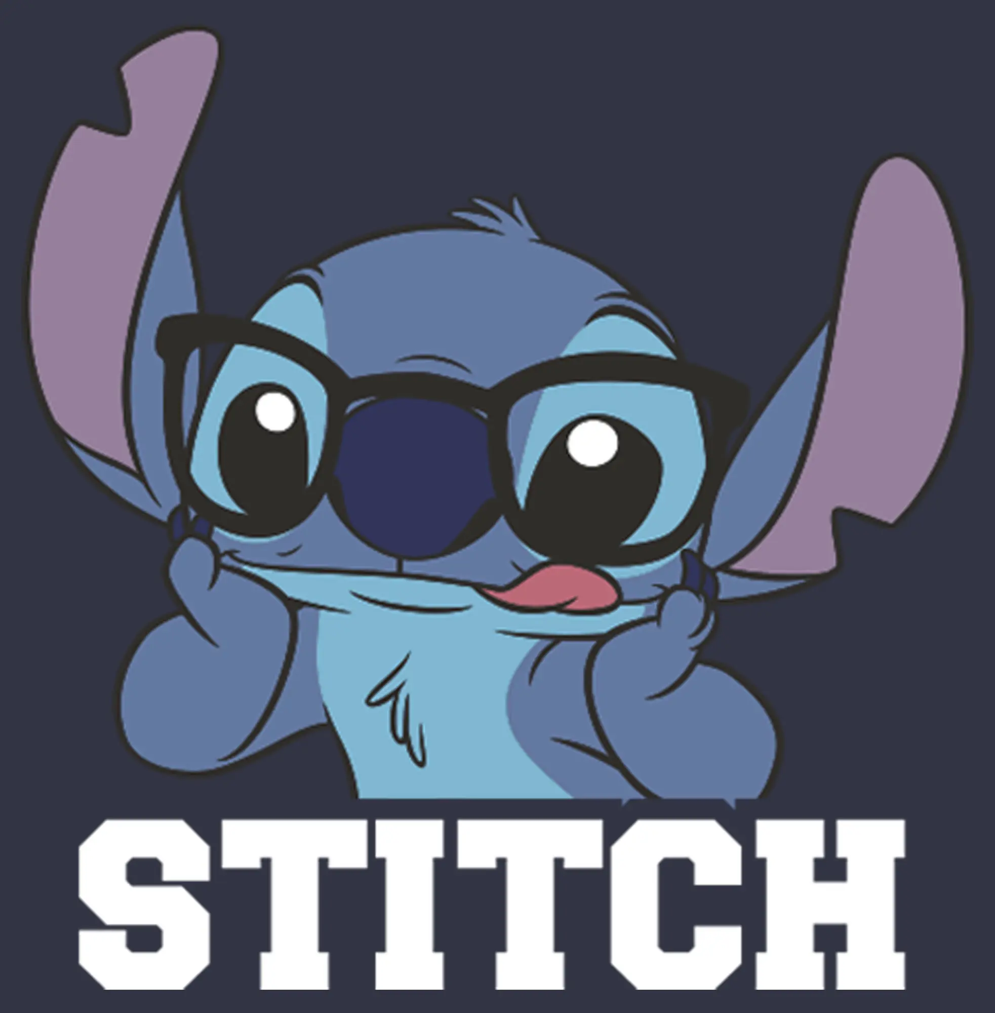 Featuring Stitch wearing silly black glasses!