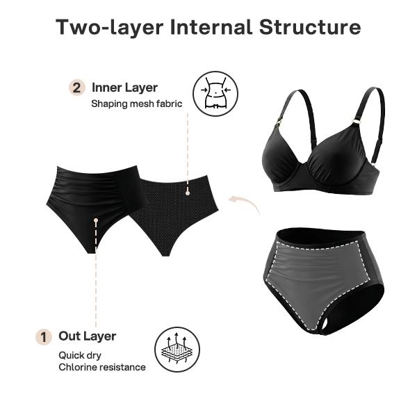 PREMIUM SCULPTING AND ENHANCED SUPPORT Experience ultimate freedom in our ultra-soft skin-friendly fabric made of 80% Nylon and 20% Elastane which is 30% lighter and 40% more elastic than standard swimwear for a true second-skin feel. This high-waisted bikini set is engineered with a built-in underwire to beautifully lift and define your bust silhouette while the intricate ruching detail adds elegant texture for a perfect gap-free fit. The high-waisted bottom features targeted tummy control and sophisticated pleats to expertly slim the midsection and create an S-curve silhouette. Equipped with removable padded bras and available in an inclusive range of sizes it offers customized support and a flattering fit for all body types. Whether for beach vacations or pool parties this set blends functional sculpting with feminine elegance for every summer occasion.