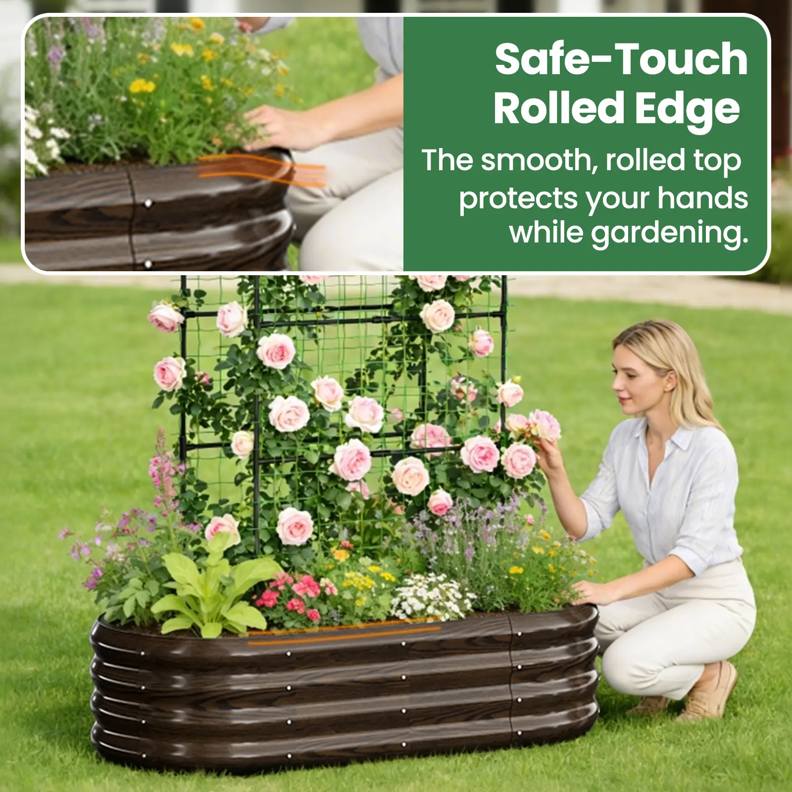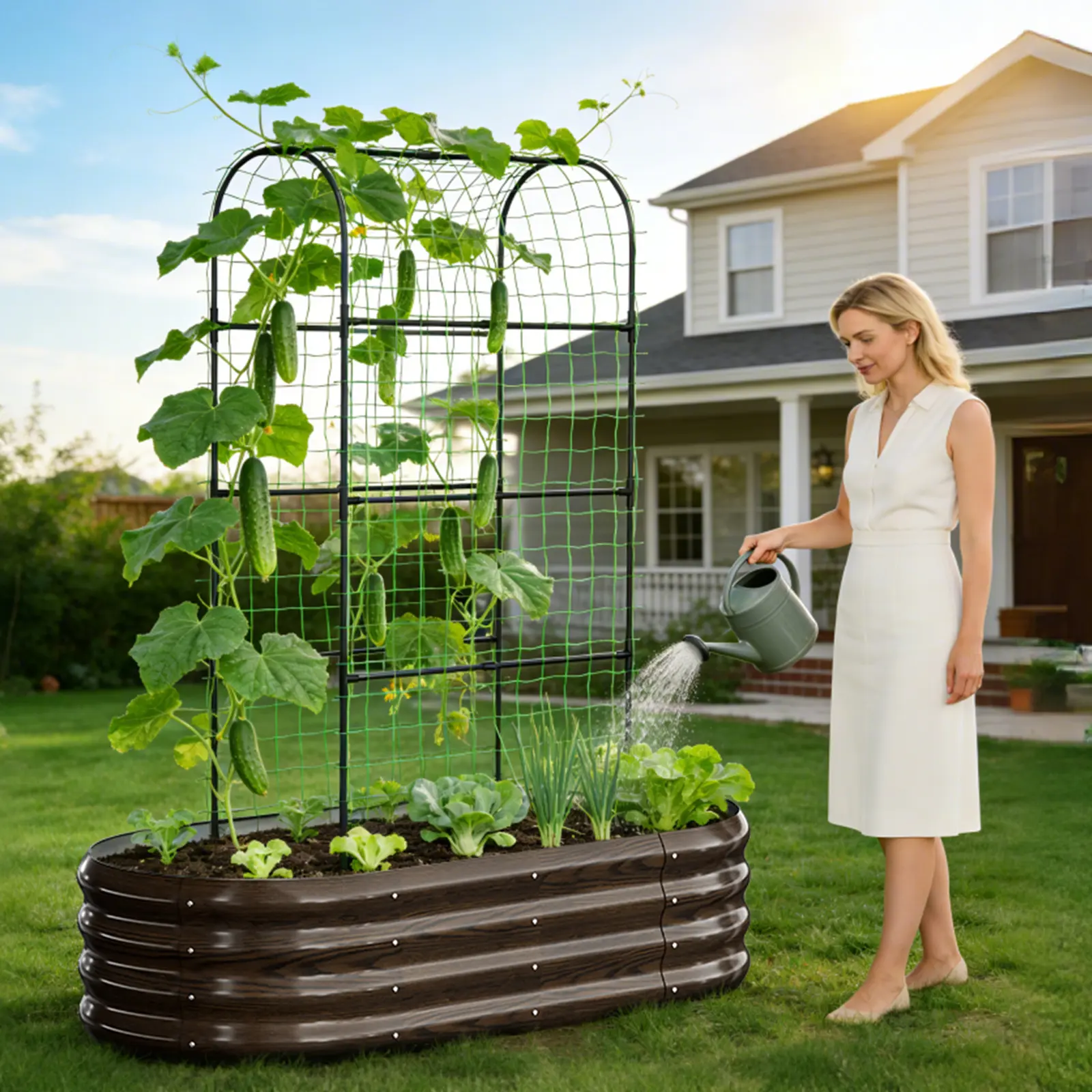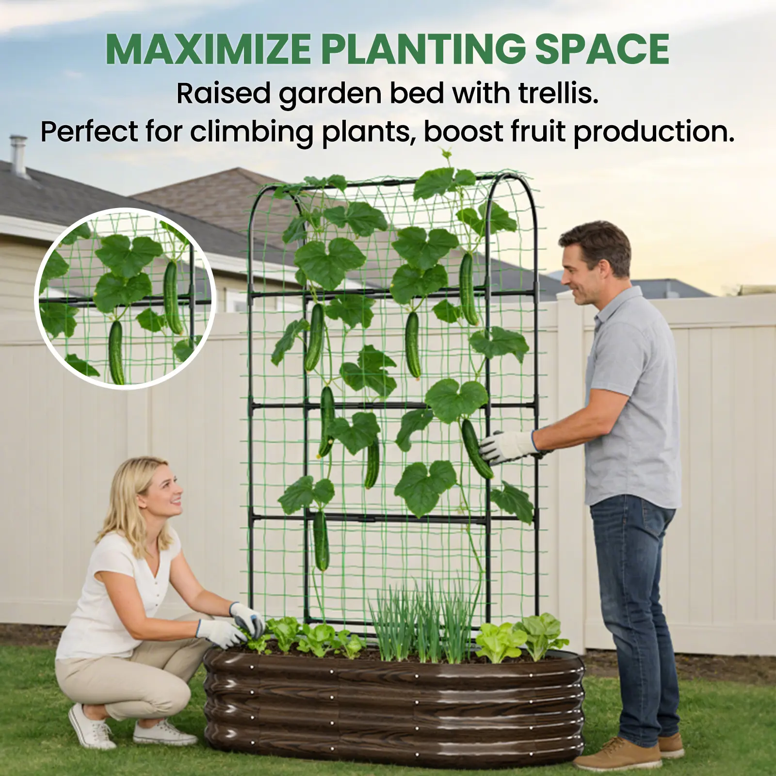 Raised Garden Bed with Trellis:This raised garden bed kit includes 1 galvanized raised bed, a 71-inch tall arch trellis, and a climbing net, providing strong support for climbing plants while enhancing the visual appeal of your backyard or garden.
