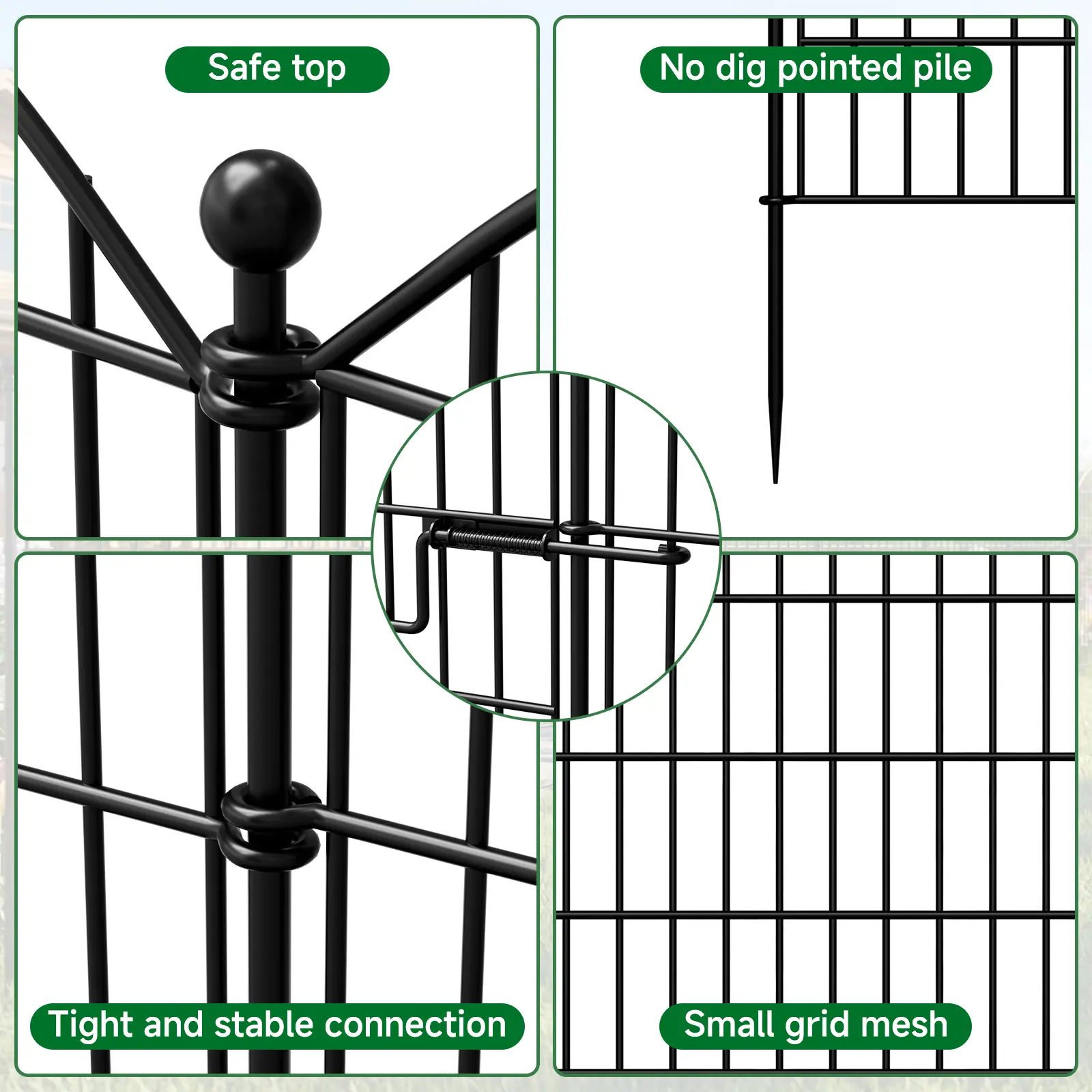 【No-Dig Easy Installation】No tools or professional skills required. Simply insert the fence panels into the soil (a rubber mallet can help with hard ground). Lightweight yet sturdy panels connect easily and can be freely arranged into different shapes to fit your space.