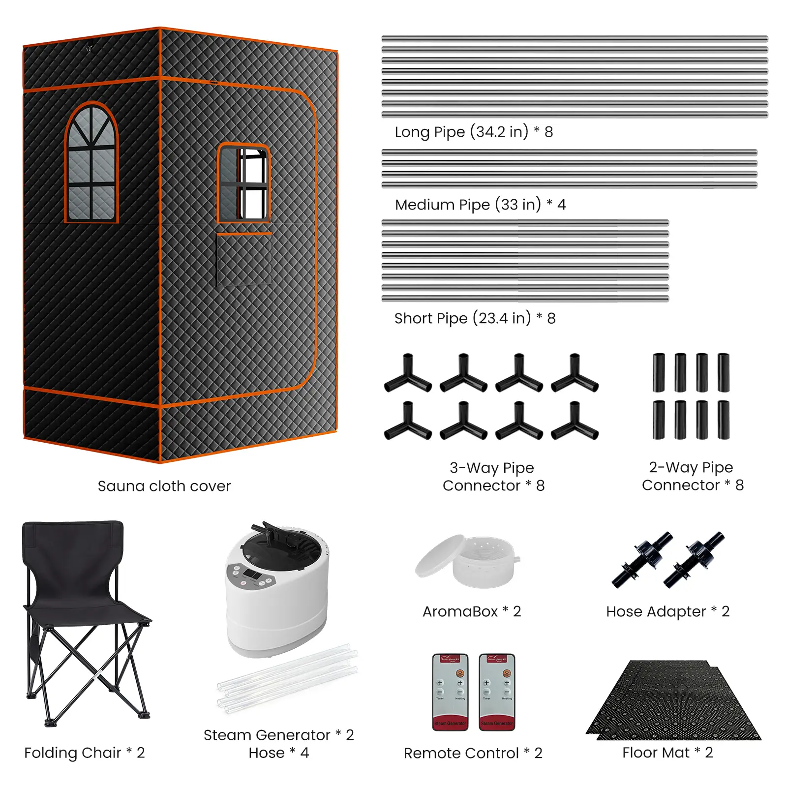 ·Type B: 2 windows, stainless steel frame, 3L steamer, chair, mat & 2 extra hooks