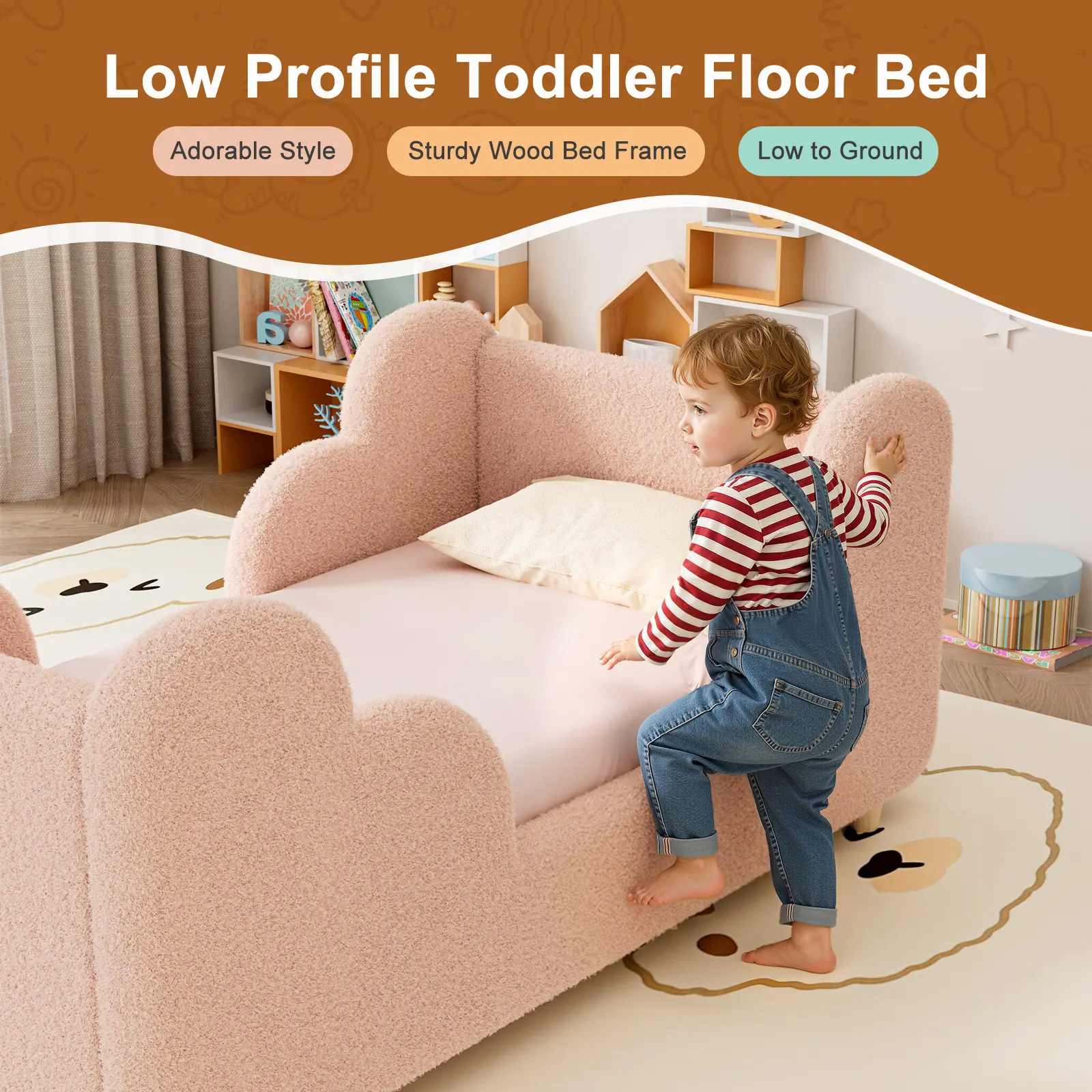 【Toddler Floor Bed – Two Options】:Choose between the guardrail version for added safety or the no-guardrail version, designed for a softer, more open feel. Perfect for children aged 1 to 7.