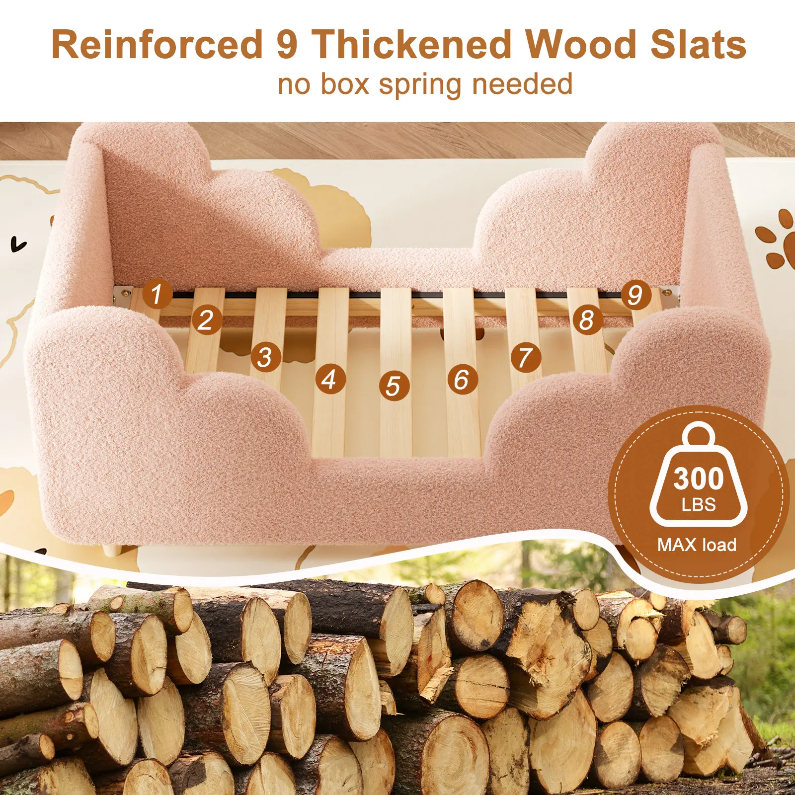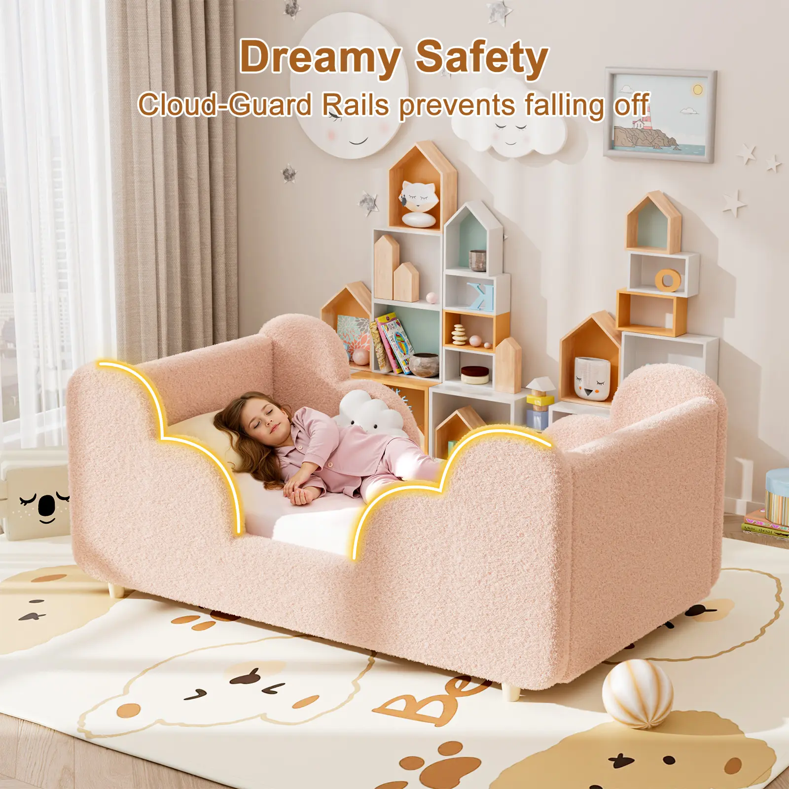 【Safety Guardrails (Optional)】:The guardrail version comes with two sturdy, removable rails to prevent accidental falls, giving parents peace of mind. The no-rail version keeps a smooth, soft profile for an open, cozy space.